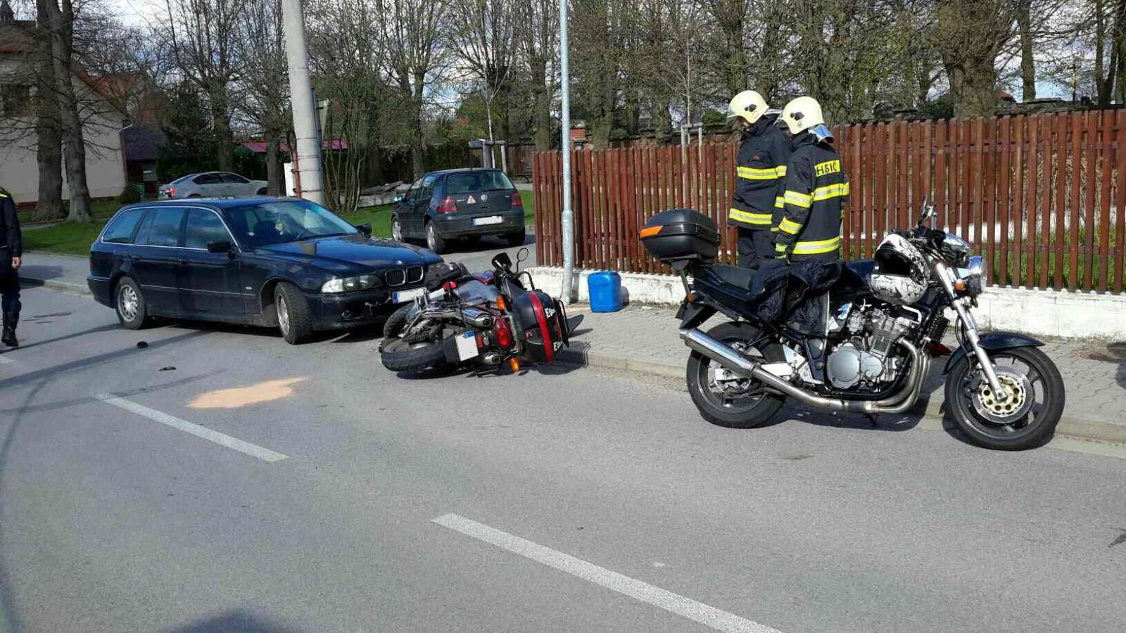 K nehodě motorkáře a osobního vozu do Proseče vyjížděli v neděli 16. dubna v 15.52 hodin profesionální hasiči z Hlinska. Hasiči ihned po příjezdu na místo pomáhali zdravotníkům s ošetřením zraněného motocyklisty i jeho spolujezdkyně. Obě zraněné osoby byly převezeny do nemocnice. Hasiči dále zajistili vozidlo i motocykl proti požáru a uniklé provozní náplně zasypali sorpčním materiálem. Motocykl byl naložen na vozidlo odtahové služby a po odstranění všech následků se jednotka vrátila zpět na základnu.