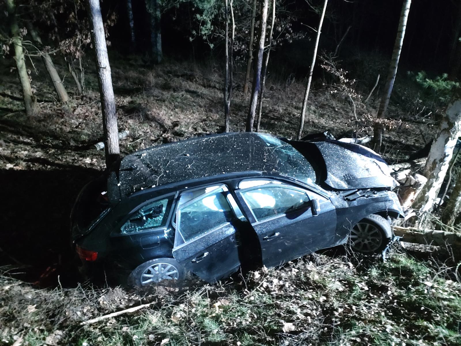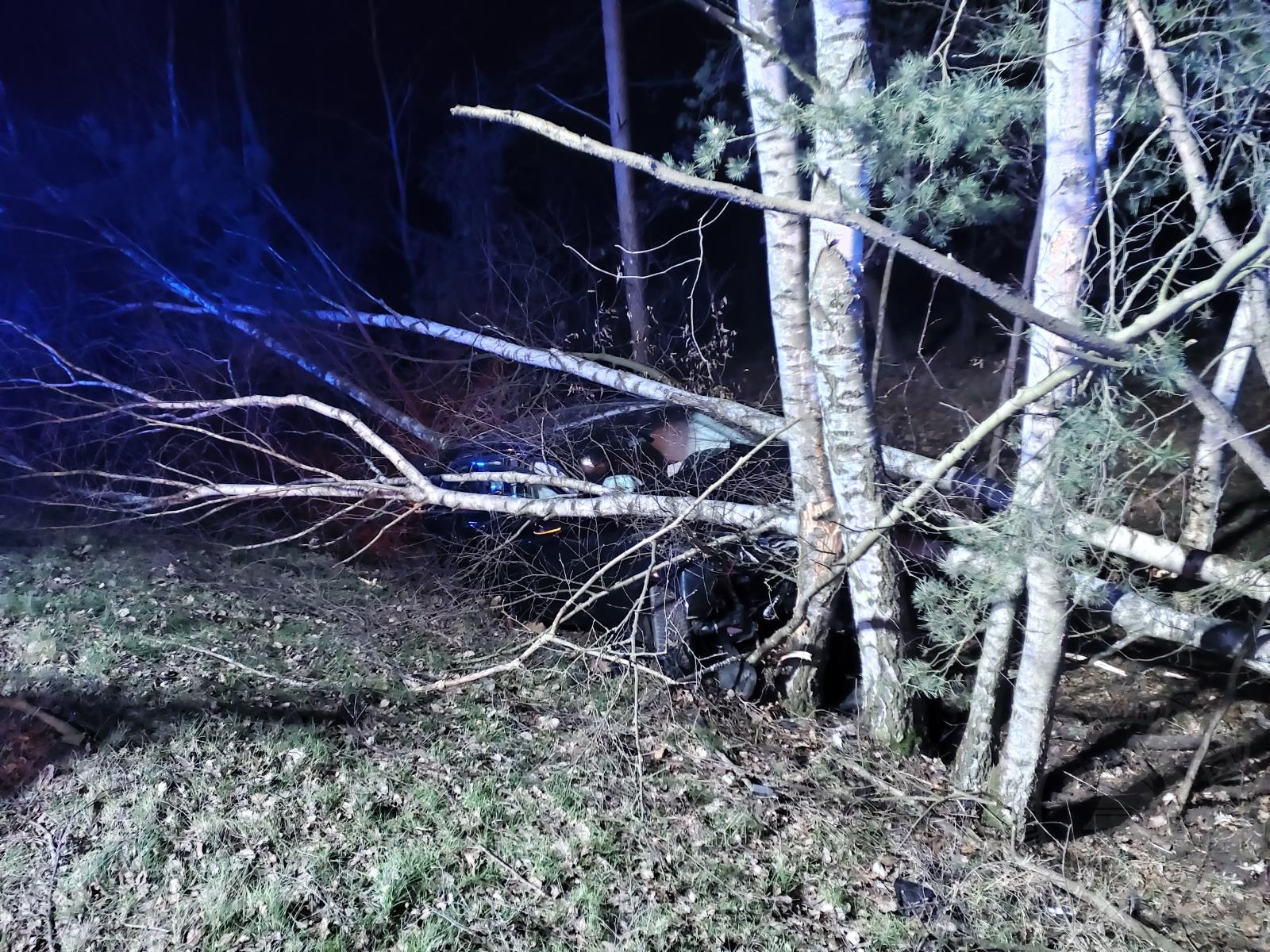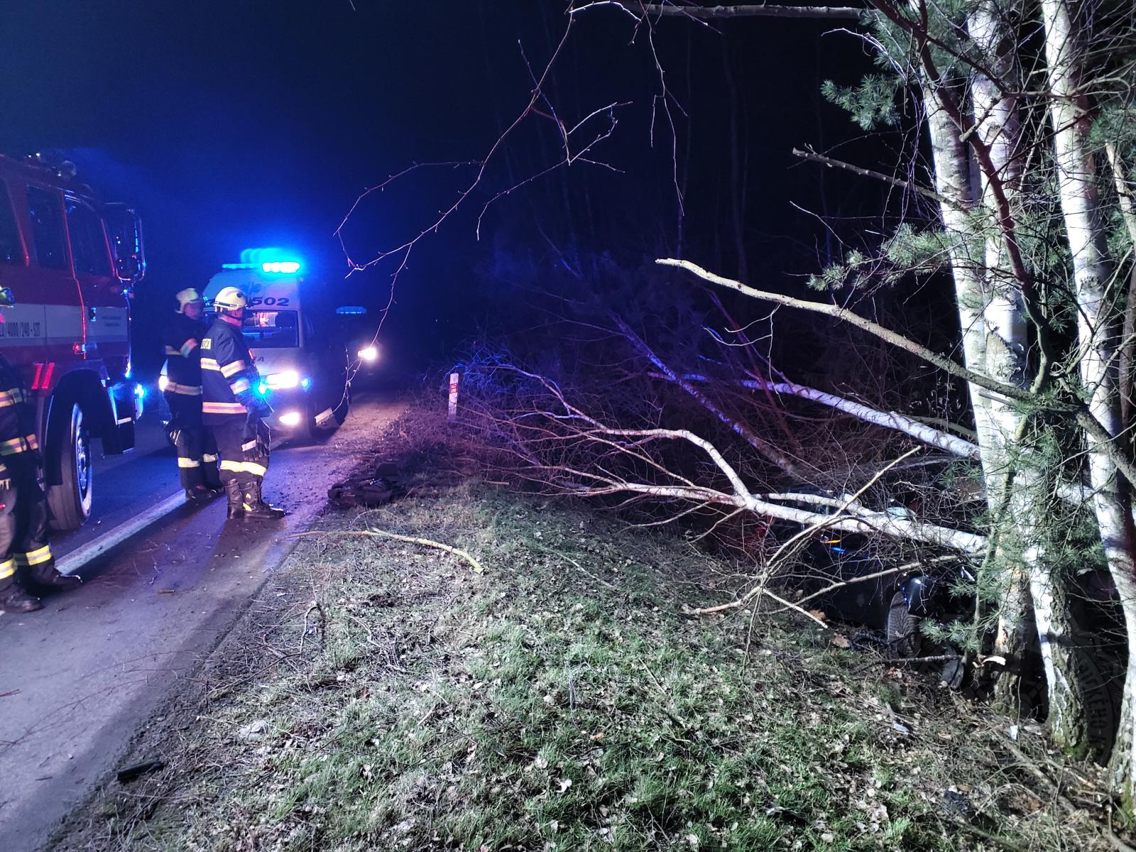 Stromy na automobil po nárazu spadly. „Muž byl předán do péče zdravotníkům. Z vozu vytekly veškeré provozní náplně. Odpojili jsme akumulátor. Spadlé stromy jsme odřezali a následně odstranili,“ říká k zásahu jeho velitel nprap. Martin Dařbuján ze stanice v Přelouči.