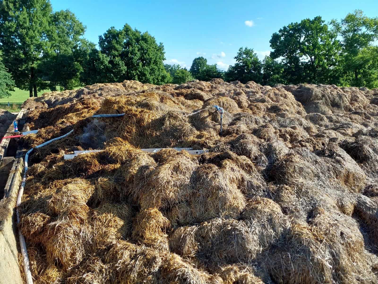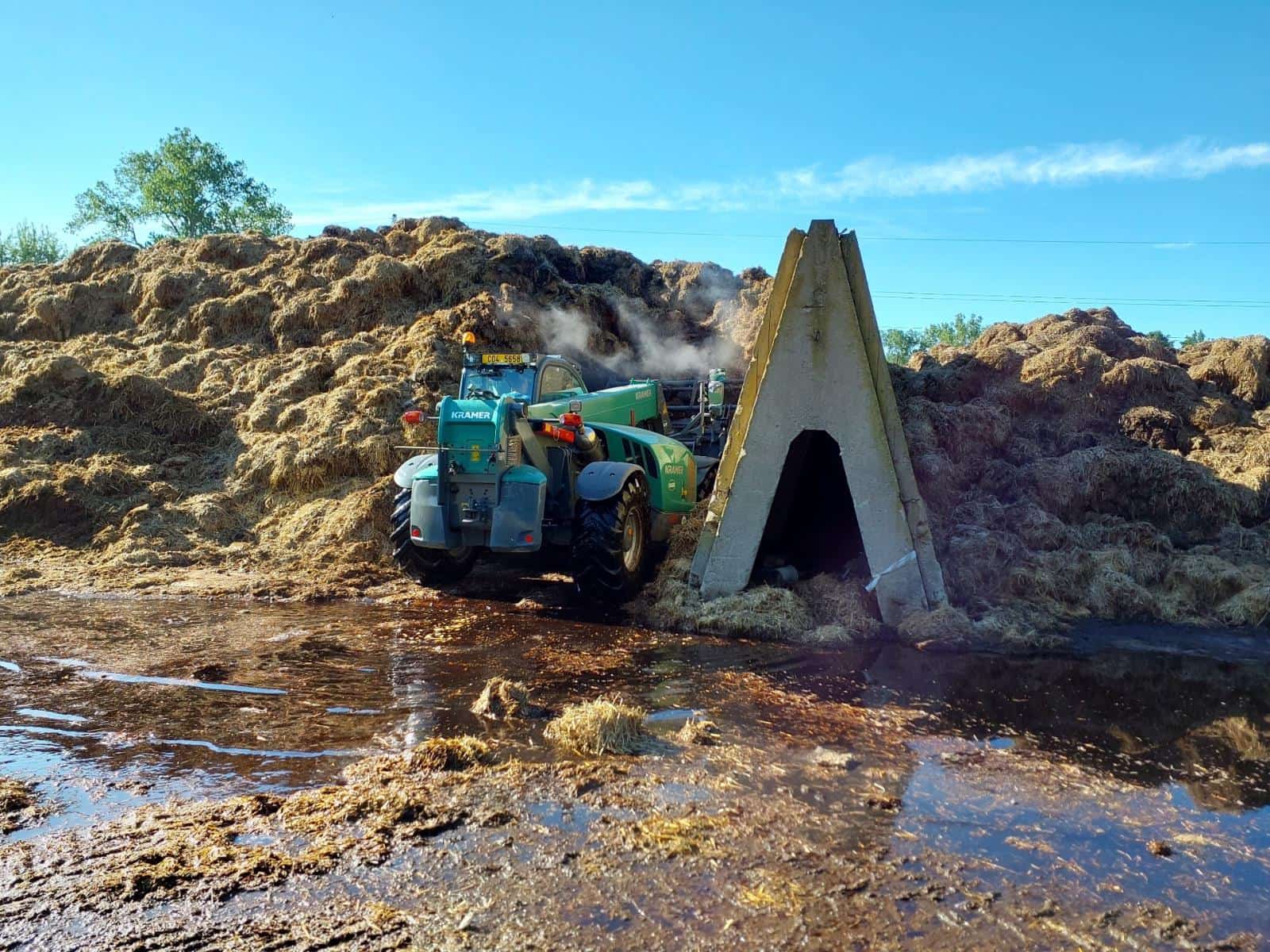 Ohnisko požáru nebylo na první pohled viditelné. Oheň se šířil uvnitř hnojiště, hluboko v jeho jádru, což komplikovalo zásah. Hasiči nasadili dva C proudy a pokusili se o tzv. injektáž – metodu, při níž se voda vstřikuje přímo do nitra hořící masy, aby se omezilo šíření požáru bez nutnosti celkové manipulace.