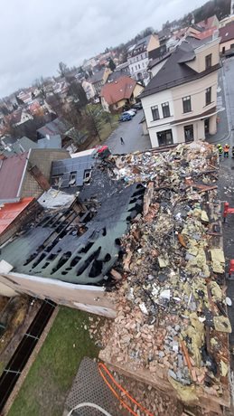 K rozebrání konstrukce střechy a poškozeného archivu byl povolán speciální stroj. Pásové rypadlo CAT 336 F se demoličním drapákem ze Záchranného útvaru HZS ČR umožnilo hasičům dostat se k ohniskům skrytým pod konstrukcí. Odvoz suti zajistily Technické služby města Hlinsko.