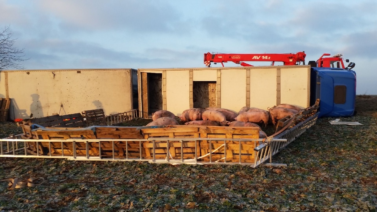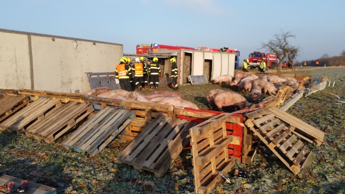 Pět jednotek hasičů zasahovalo v úterý 11. ledna na silnici č. 355 u Chrasti na Chrudimsku u nehody kamionu, který skončil na boku v příkopu. V kamionu byla převážena zvířata, přesněji vepři a krávy. Hasiči na místě vytvořili provizorní ohradu ze žebříků a následně dírou ve střeše kamionu vytahovali ven prasata. Na pomoc vyrazil i automobilový jeřáb z Pardubic. Celkem bylo uvnitř kolem 100 kusů prasat, z toho 30 jich nepřežilo. Převážených krav bylo celkem 8, jedna nehodu nepřežila.