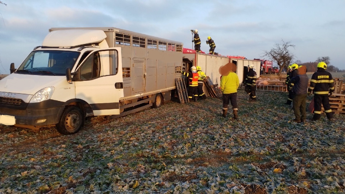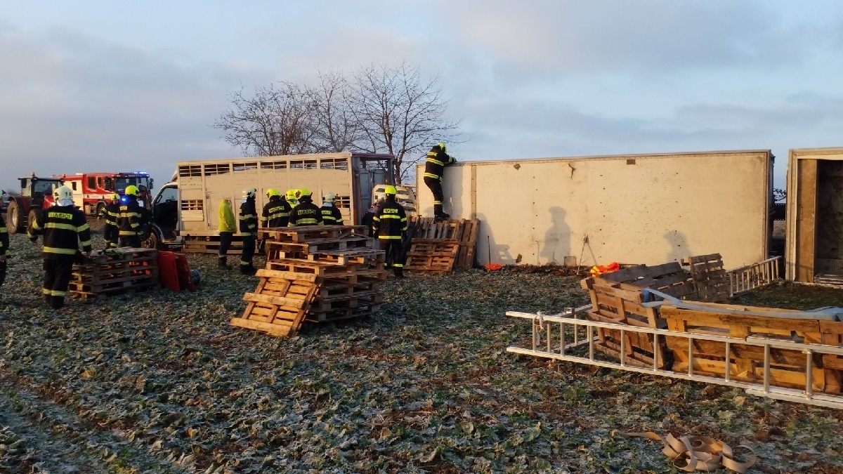 Náročný zásah u nehody kamionu se zvířaty