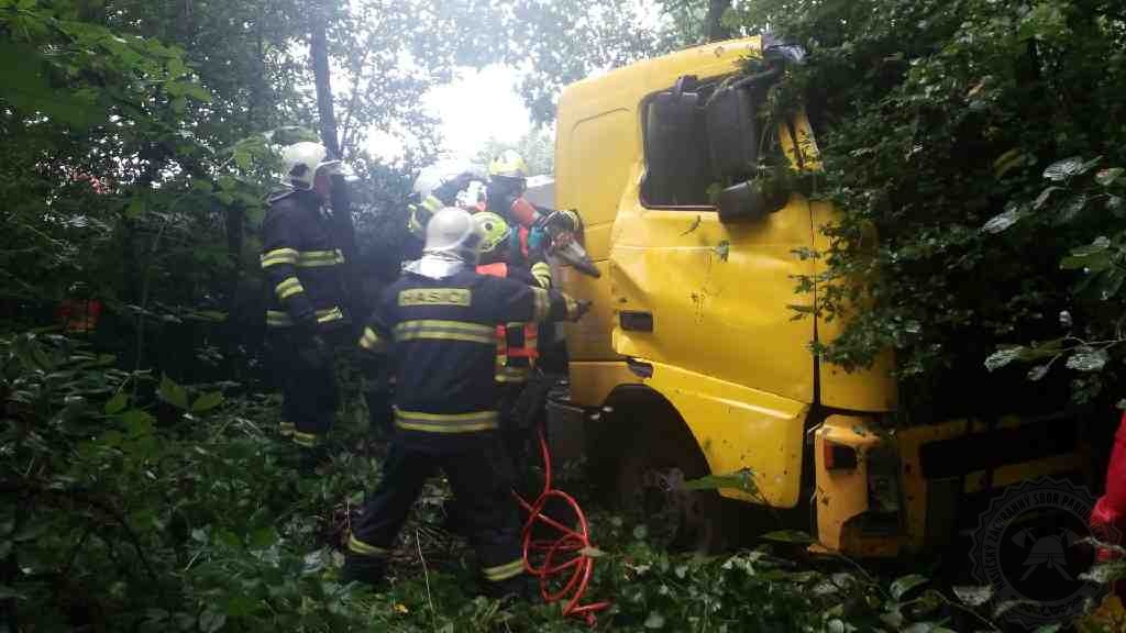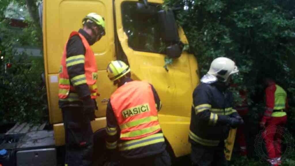 K nehodě do Hlavečníku na Přeloučsku byly povolány dvě jednotky hasičů ve čtvrtek 5.8.2021 v 8.26 hodin. Jednalo se o střet nákladního automobilu a cisterny. Ta skončila mimo komunikaci v příkopu. Po příjezdu na místo museli hasiči vyprostit řidiče, který zůstal uvězněn v kabině cisterny. Naštěstí hydraulické vyprošťovací zařízení hasiči použili pouze na vzpříčené dveře. Řidič poté vystoupil z kabiny sám. Řidič byl předán do péče zdravotníkům. V cisterně byla převážena odpadní voda. V nákladním automobilu, jenž měl nabouraný bok, nebyl řidič zraněn. Nákladní vůz převážel maso. Oba řidiči si zařídili náhradní auta a náklad bude přeložen, voda přečerpaná. Hasiči dále zajistili unikající provozní náplně a odstranili následky nehody.