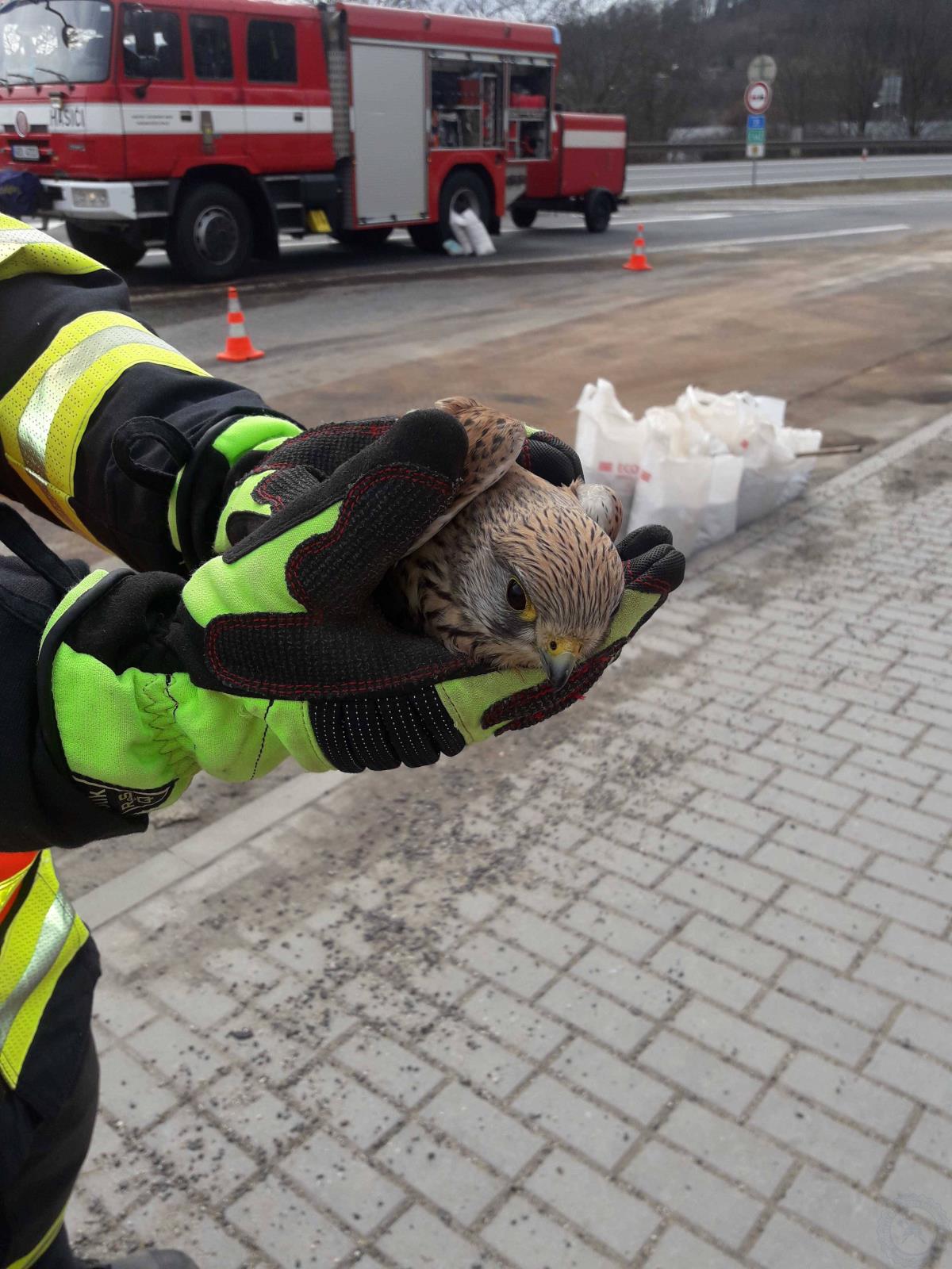 A během úklidu komunikace stačili hasiči zachránit i poštolku, kterou projíždějící automobil srazil. Jednotka kontaktovala záchrannou stanici Zelené Vendolí, která dravého ptáka přijala.