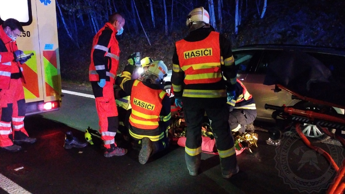 Na místo se dostavily všechny složky integrovaného záchranného systému. Nehoda si vyžádala dvě zraněné osoby, jednu museli hasiči vyprošťovat.