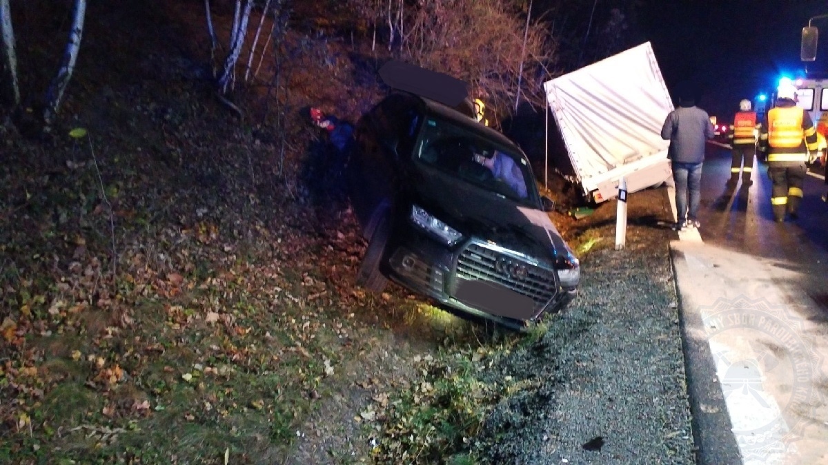 Kolize dvou osobních vozidel a dodávky v neděli 31. října kolem 20.00 hod. na silnici I/37 mezi Nasavrky a Slatiňany.