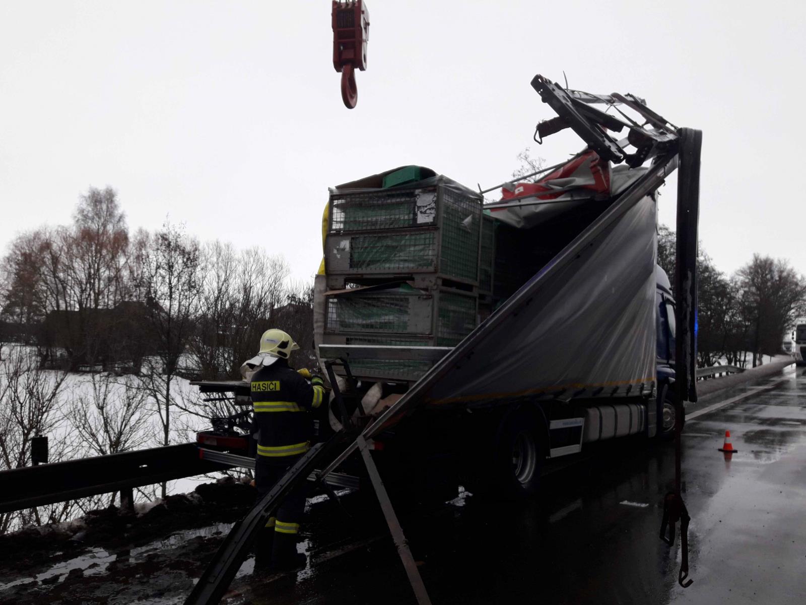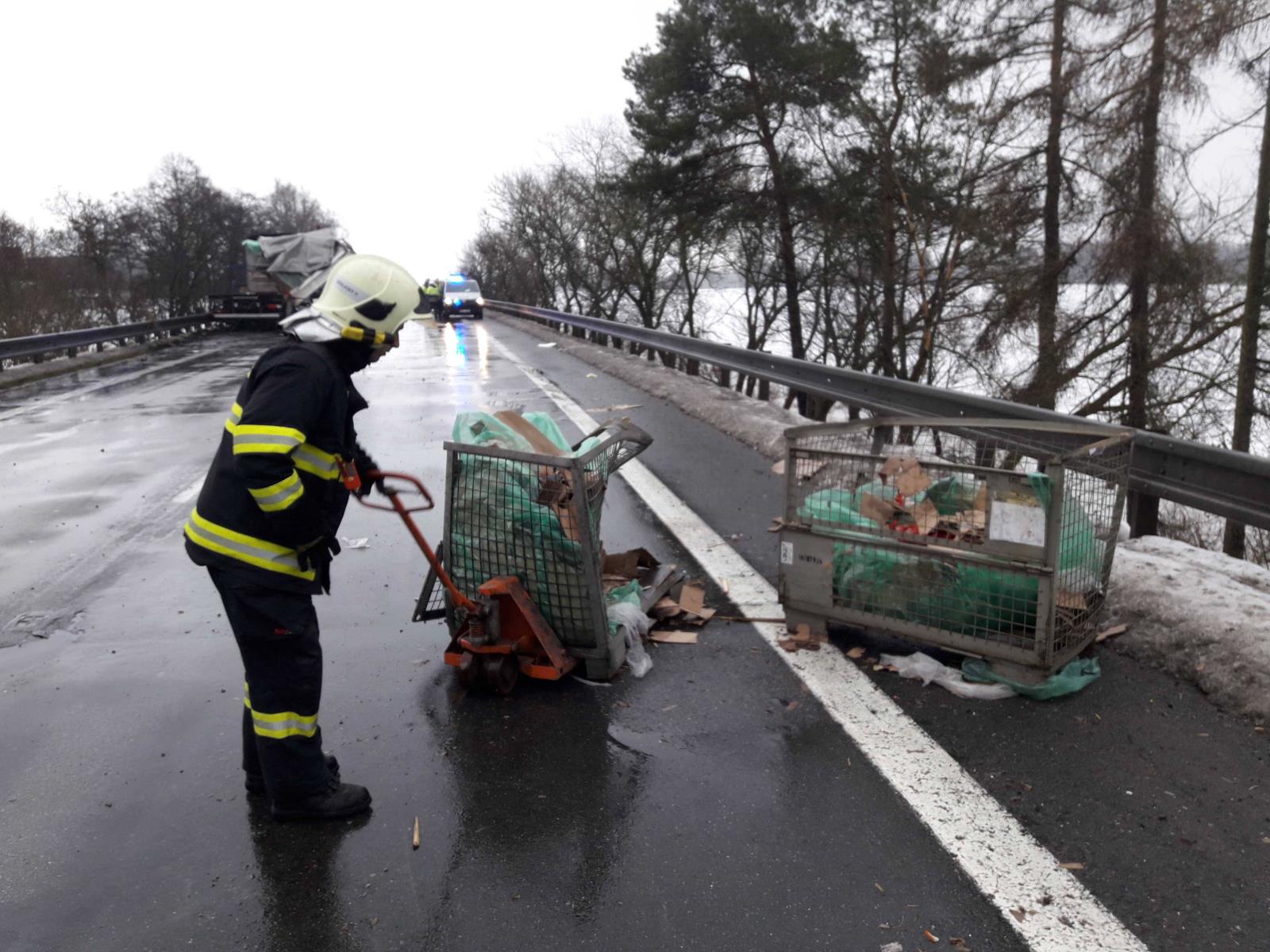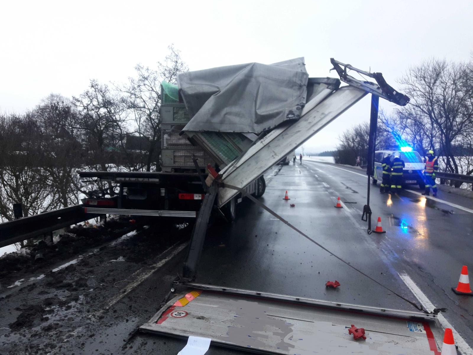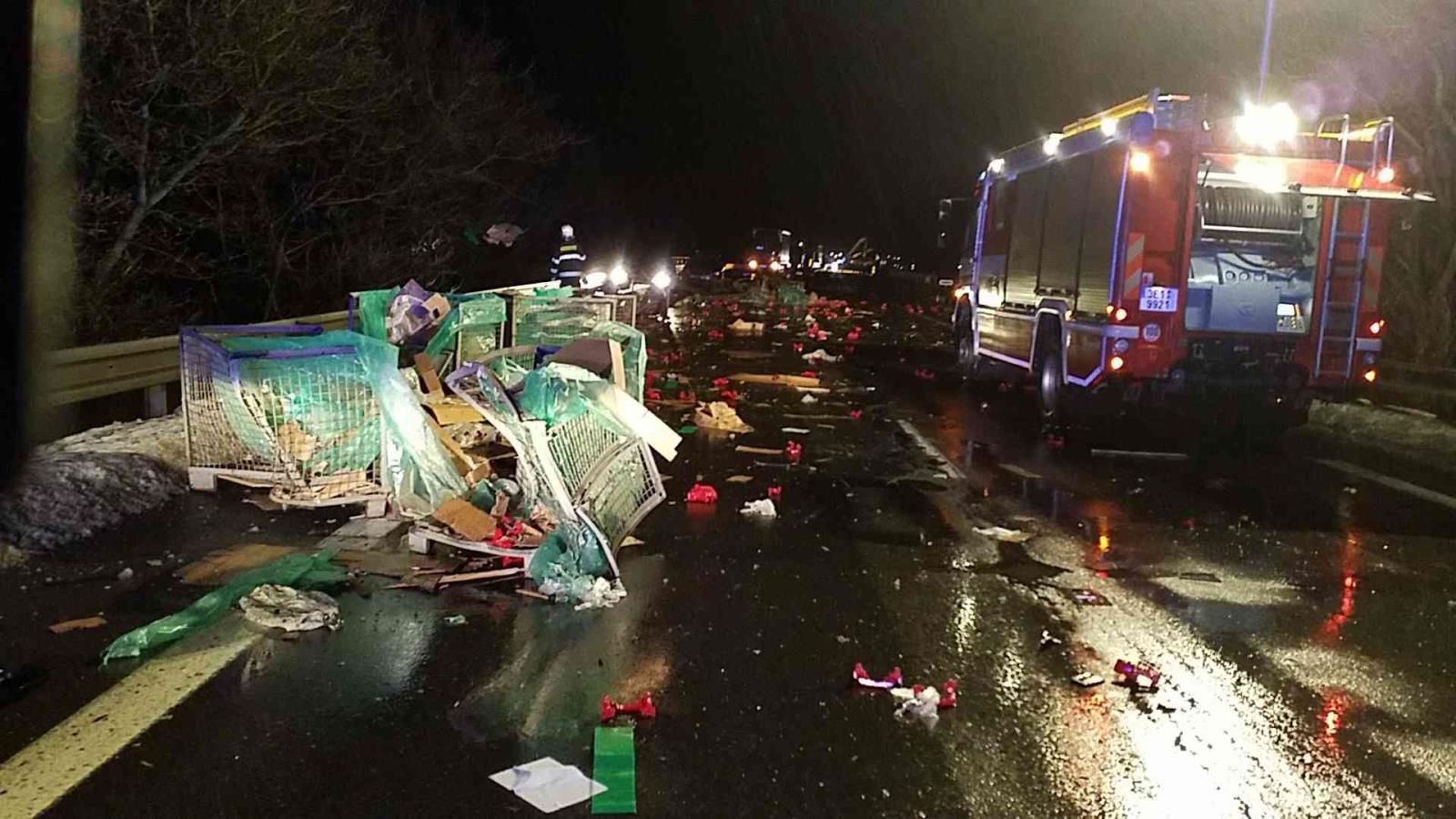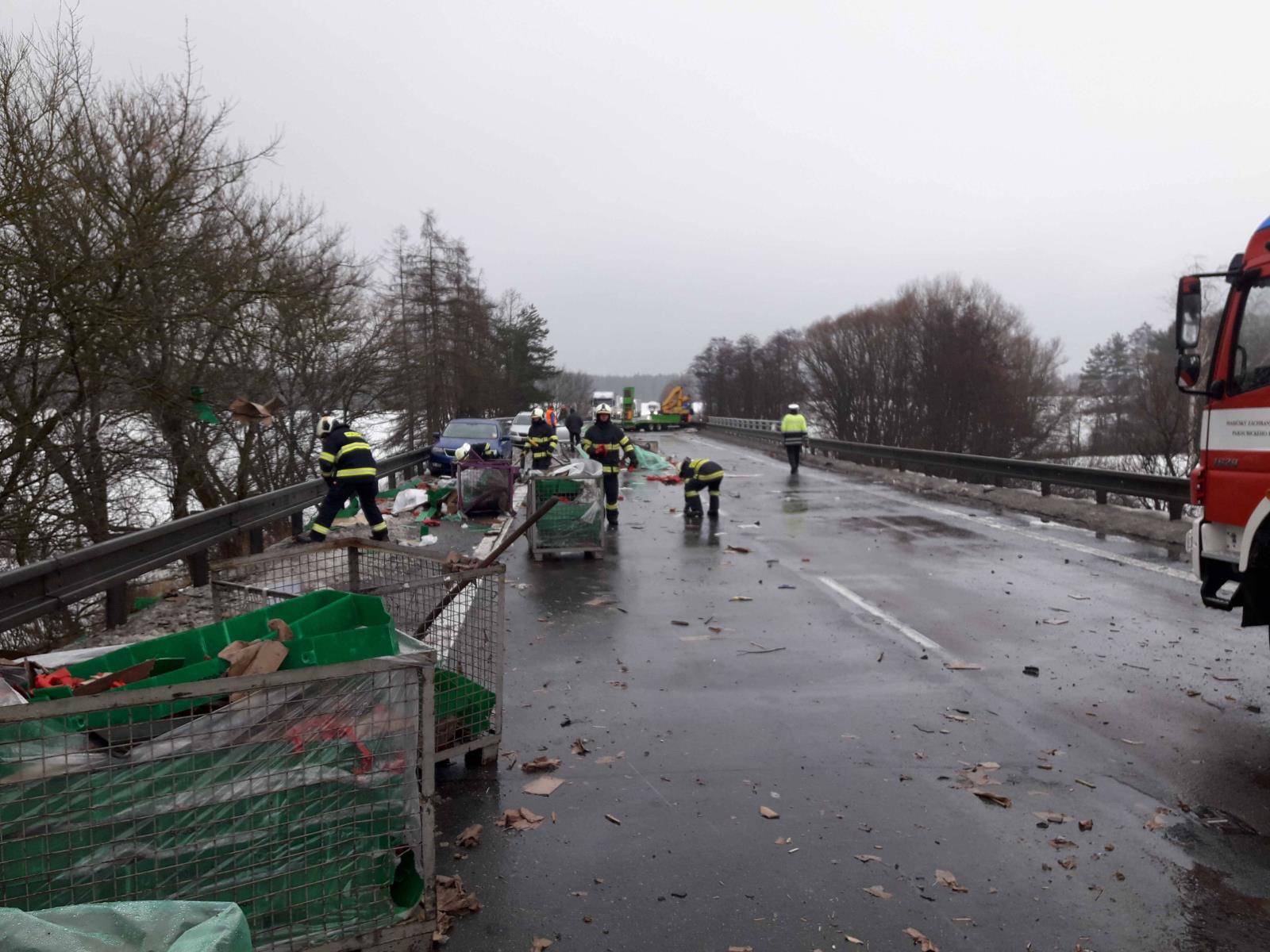 Došlo zde k nehodě dvou nákladních vozidel a dvou osobních automobilů. Na silnici byl doslova rozmetán náklad z nákladního automobilu, které tvořily součástky do automobilů.