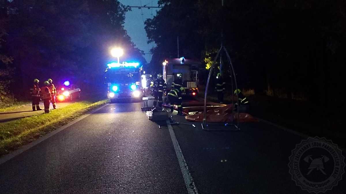 K nehodě nákladního auta s dvěma osobními vozy na silnici z Rybitví do Lázní Bohdanče vyjížděli v pátek 16. října v 5.49 hodin profesionální hasiči z Pardubic. Na místě zasahovali i místní dobrovolní hasiči. Při příjezdu jednotky hasičů na místo byla uvnitř zadní části jednoho osobního vozu zaklíněná osoba, kterou hasiči museli vyprostit. Po vyproštění byla zraněná osoba předána do péče zdravotníkům a následně převezena do nemocnice.