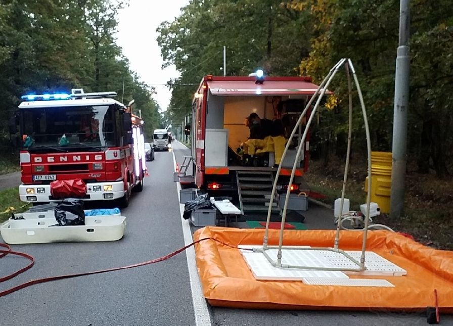 Postaveno bylo i dekontaminační stanoviště k následné očistě zasahujících hasičů v nebezpečné zóně. Poté bylo nutné odstranit i havarovaná auta, která byla naložena na vozidla odtahové služby.