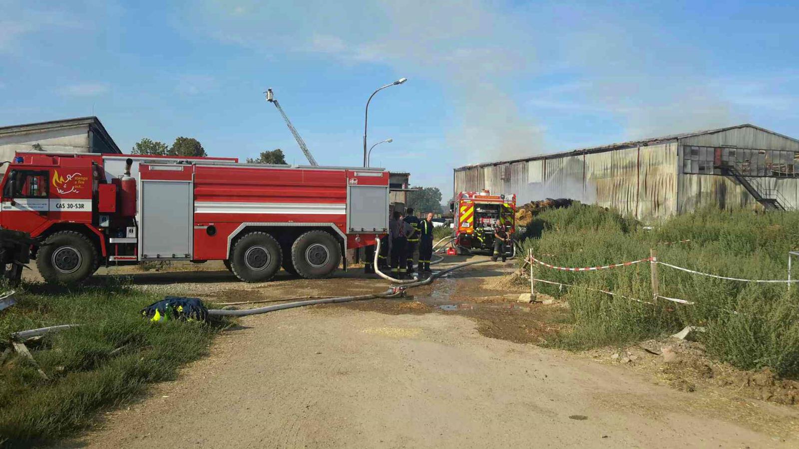 Velkokapacitní seník s naskladněným senem a slámou byl plameny zasažen na dvou místech. Při příjezdu hasičů byl již celý plechový objekt o rozměrech přibližně 80 x 20 metrů v plamenech.