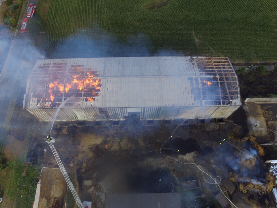 Středa 8.srpna 2018 .Požár velkokapacitního seníku hasiči likvidují již více než 21 hodin