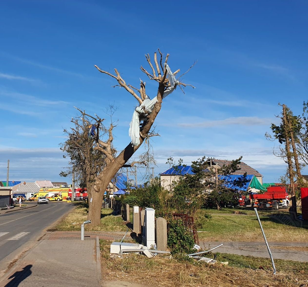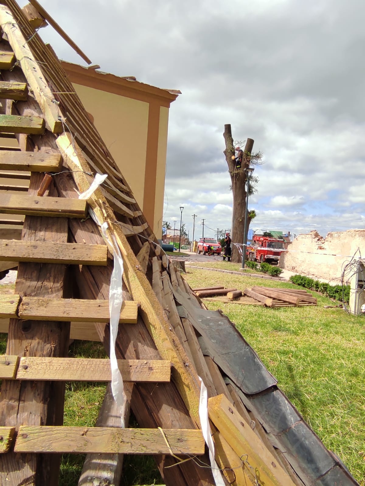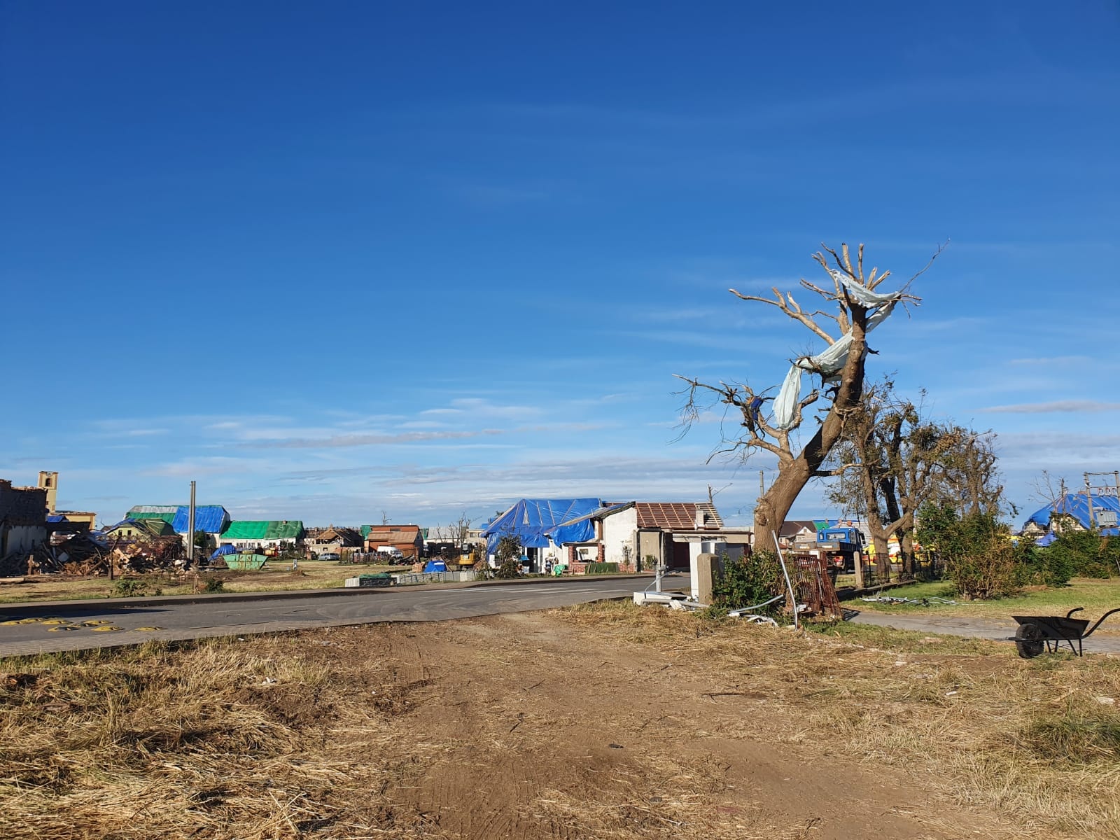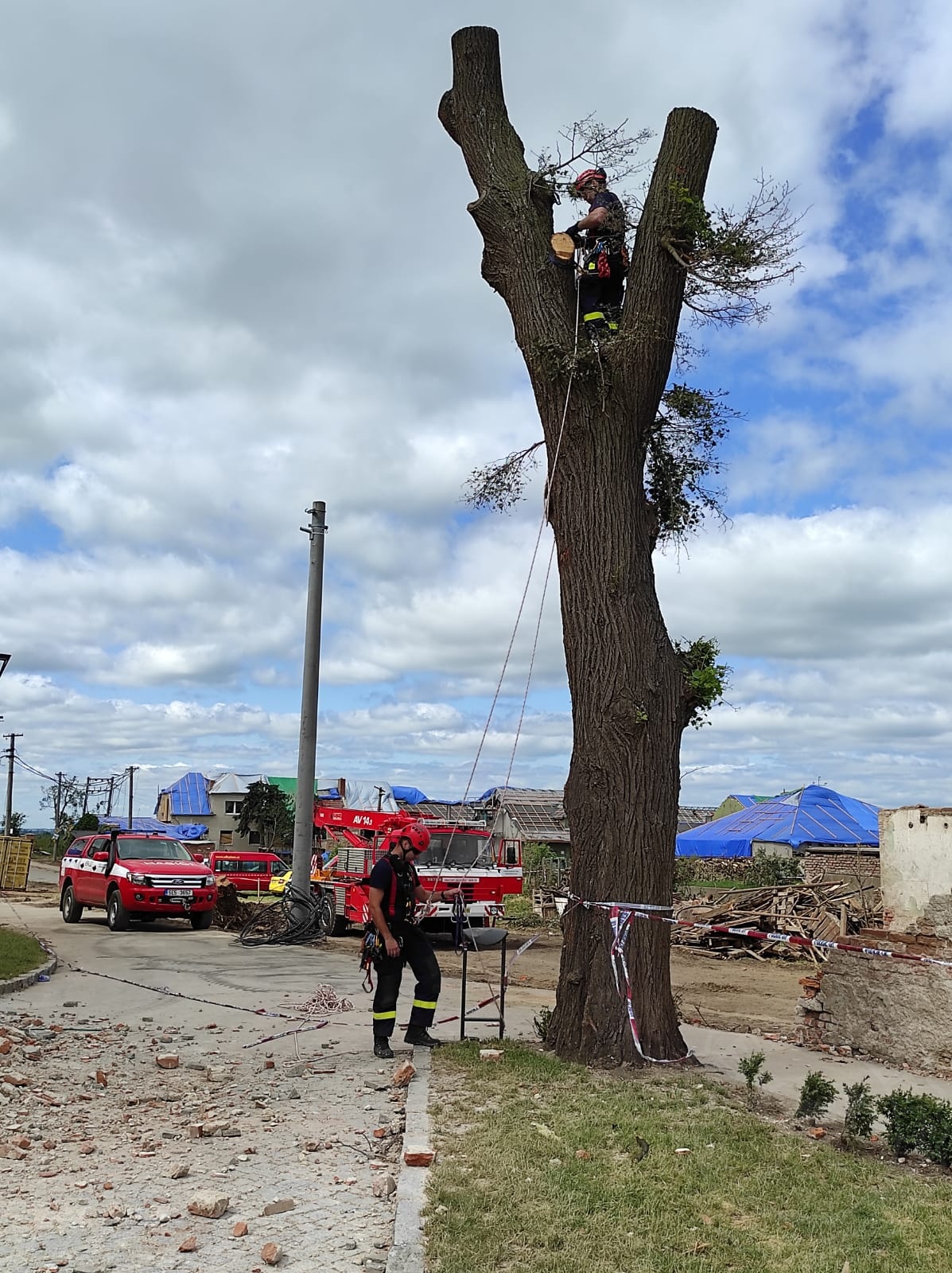 Každým dnem je vidět za hasiči obrovský kus práce. Ulice, které byly plné suti, jsou den ode dne čistší, suť mizí…“Dnes máme za úkol vyčistit dvě ulice – Vítězství a Školní. Odvezeme sutiny ze dvorů domů, odklidíme trosky a demontujeme halu,“ říká k rannímu rozkazu ppor. Bc. Petr Dvořák, velitel odřadu HZS Pardubického kraje. Jedna jednotka musela bohužel pokácet dub u kostela, který zcela poničilo tornádo.