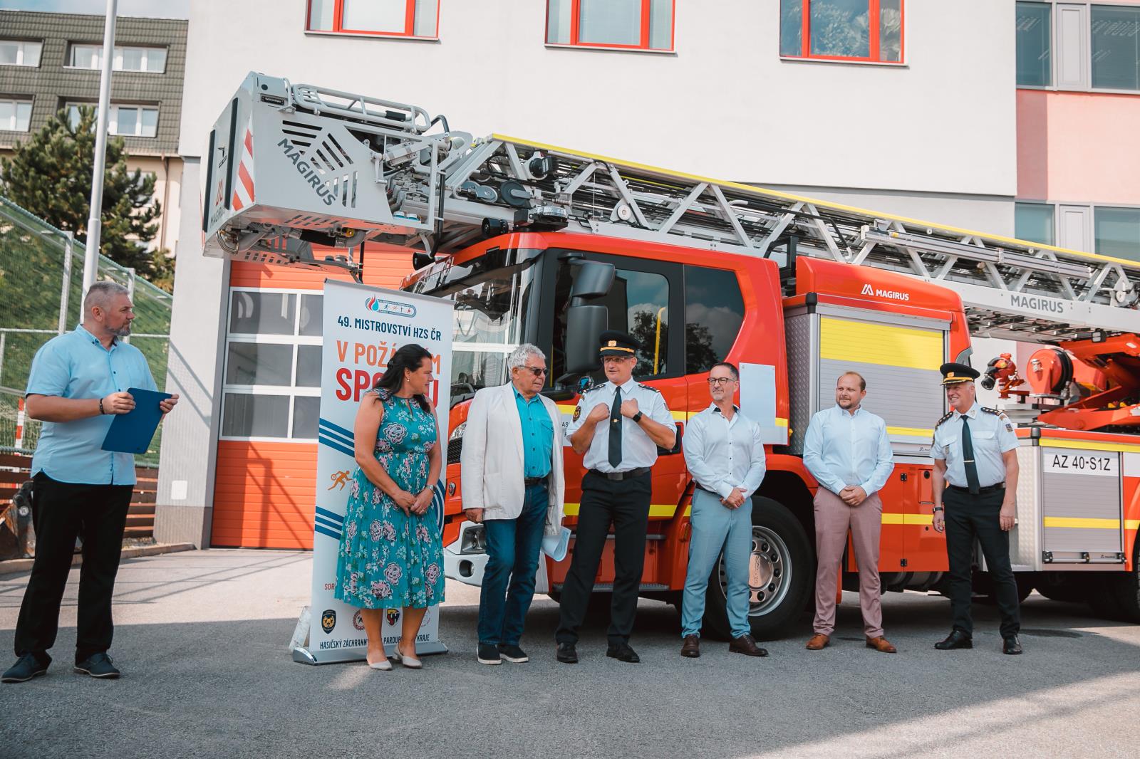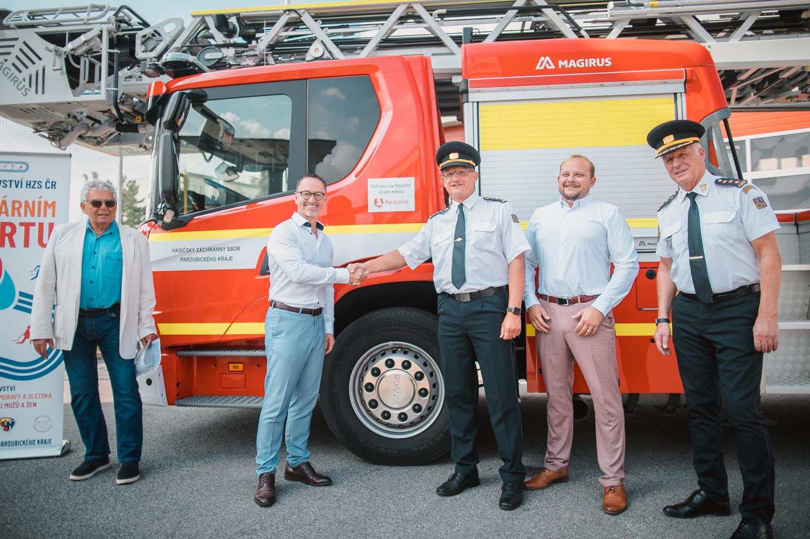 Při příležitosti Mistrovství ČR v požárním sportu byl oficiálně předán automobilový žebřík AZ 42 Scania, který jsme si na podzim roku 2021 převzali u výrobce, společnosti Magirus, a na který přispělo město Pardubice a primátor Statutárního města Pardubic Martin Charvát dnes oficiálně žebřík předal krajskému řediteli plk. Aleši Černohorskému.