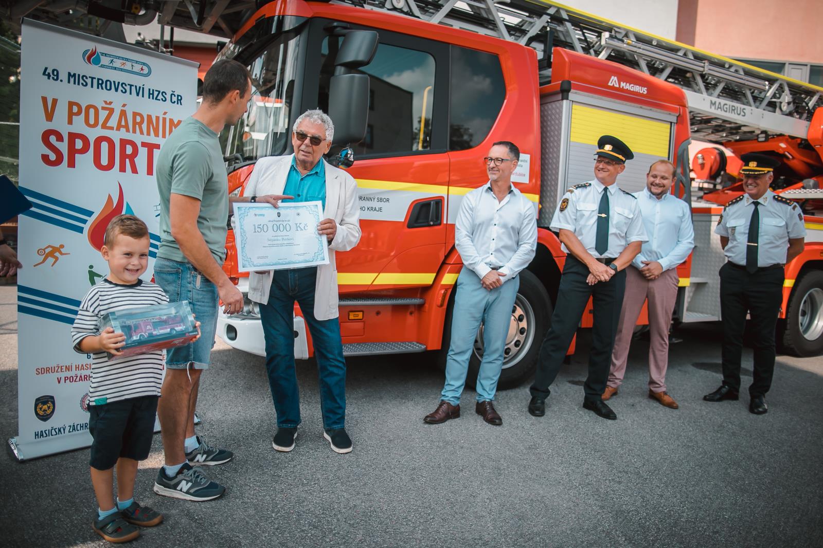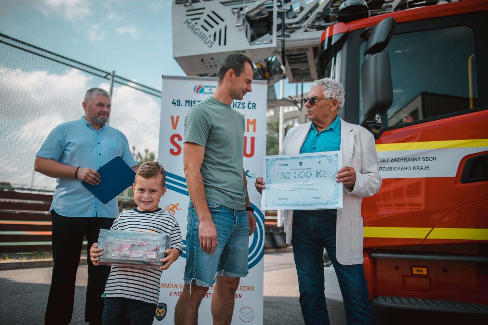 Během mistrovství se také na požární stanici v Pardubicích uskutečnilo předání finančního daru šestiletému Štěpánkovi, který trpí geneticky danou poruchou metabolismu, konkrétně Argininjantarovou acudirií.