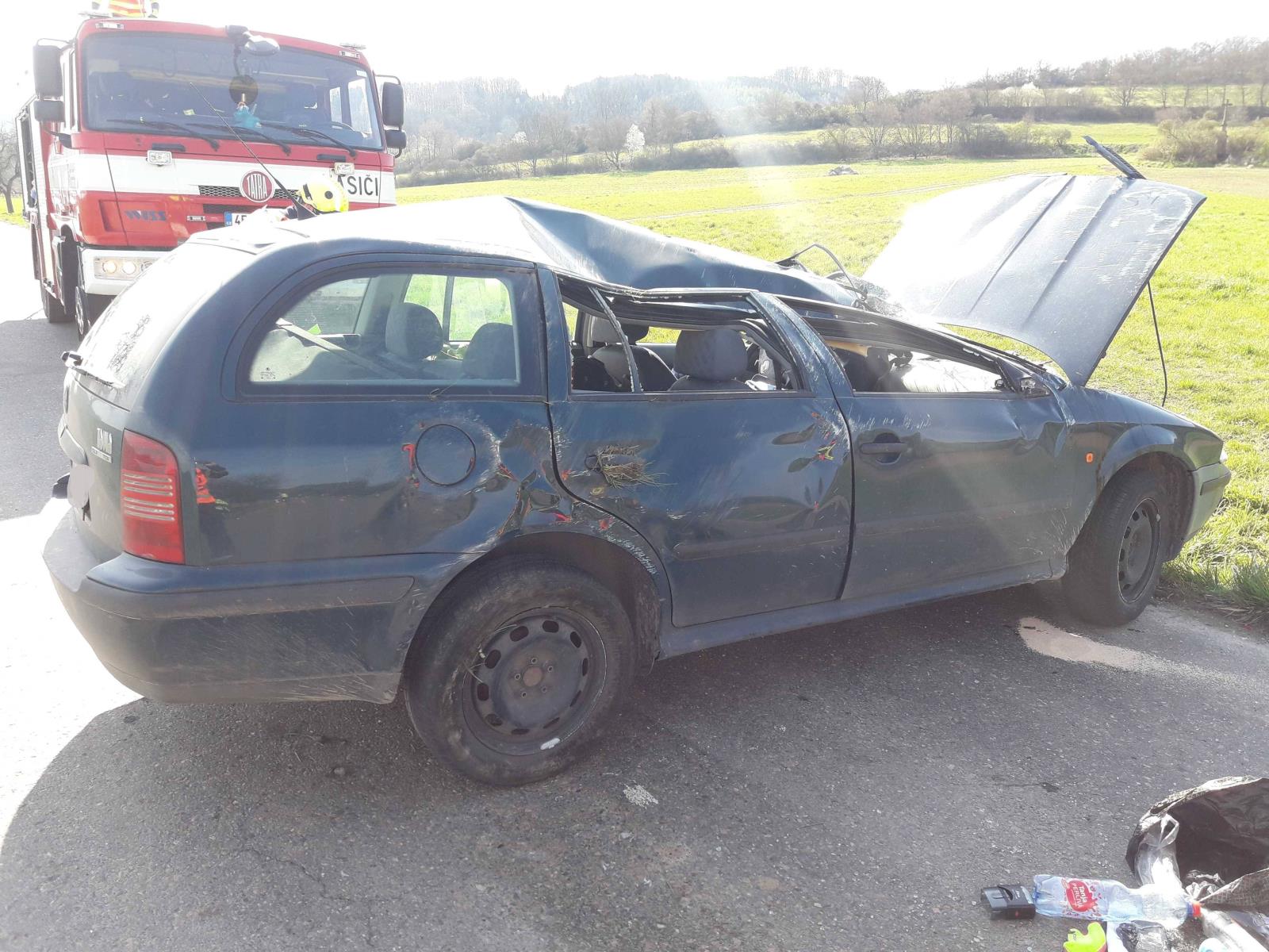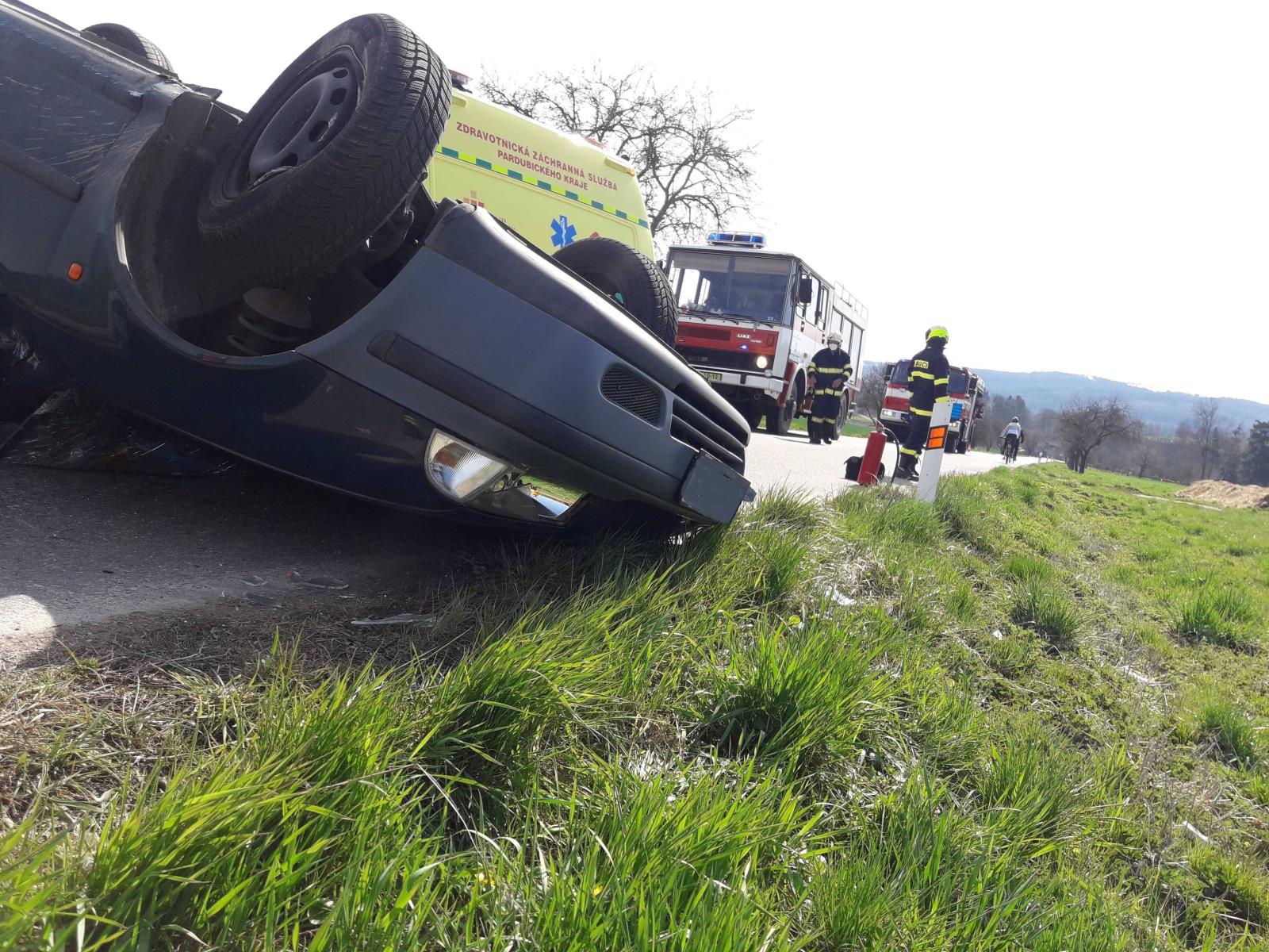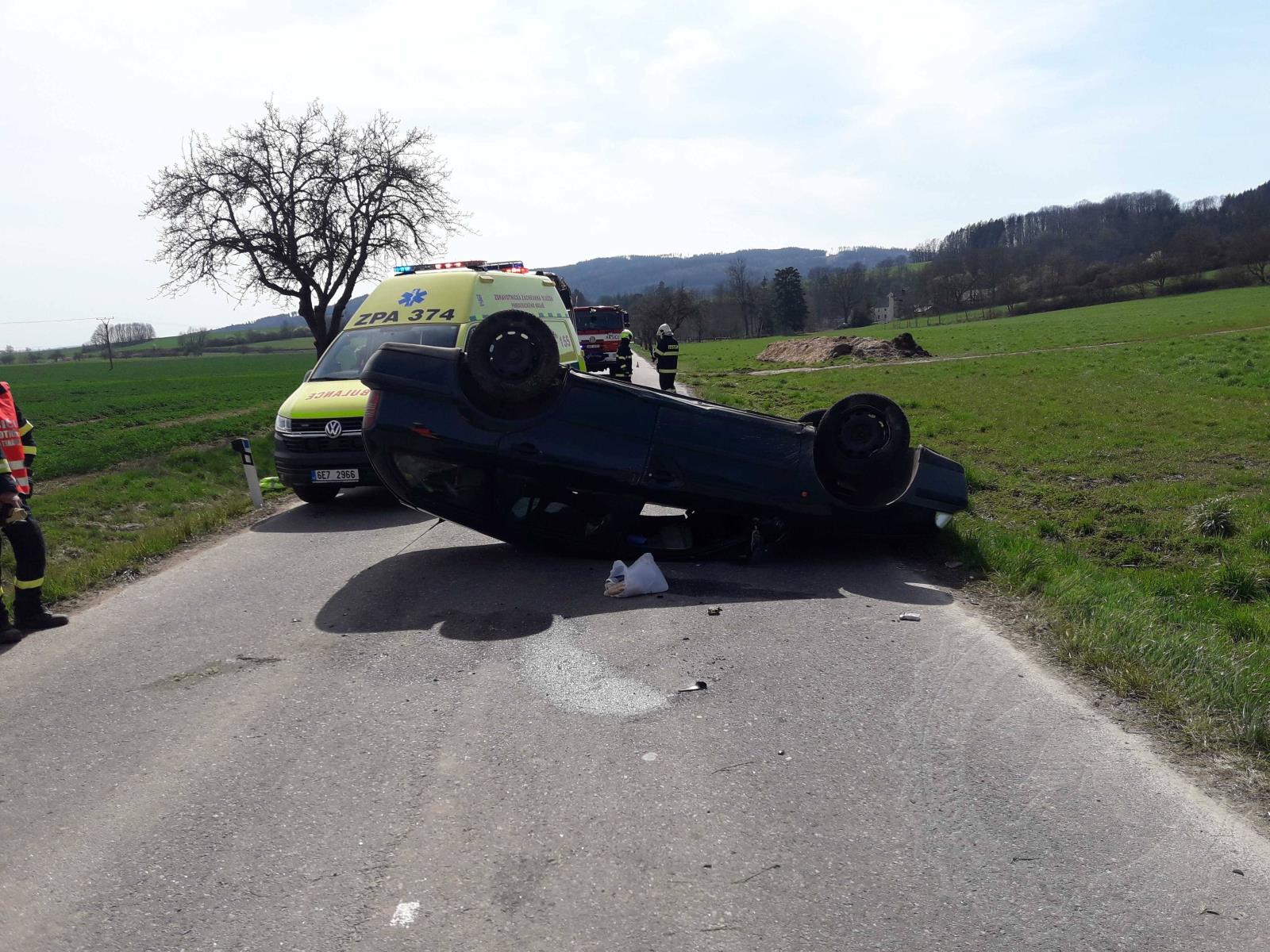 Silnice mezi Mezihořím a Petrůvkou na Svitavsku byla ve středu odpoledne neprůjezdná. Osobní automobil zde skončil na střeše na silnici. Na místě zasahovali profesionální hasiči z Moravské Třebové spolu s dobrovolnými z Městečka Trnávky. Řidiče ošetřila zdravotnická záchranná služba a odvezla do nemocnice. Jednotky pomocí navijáku otočily vozidlo na kola, zajistily proti požáru a odstavily mimo komunikaci. Uniklé provozní kapaliny zasypaly sorbentem.
