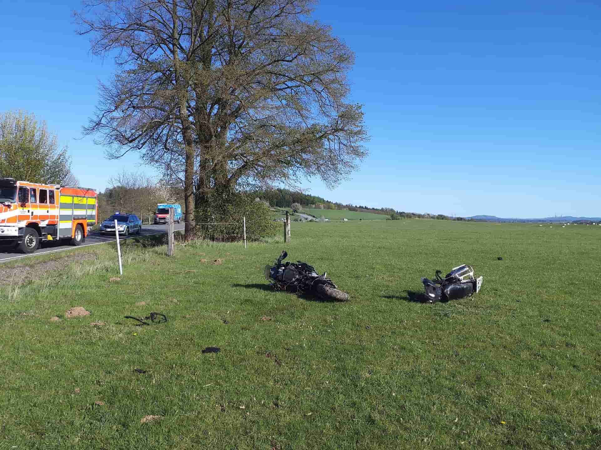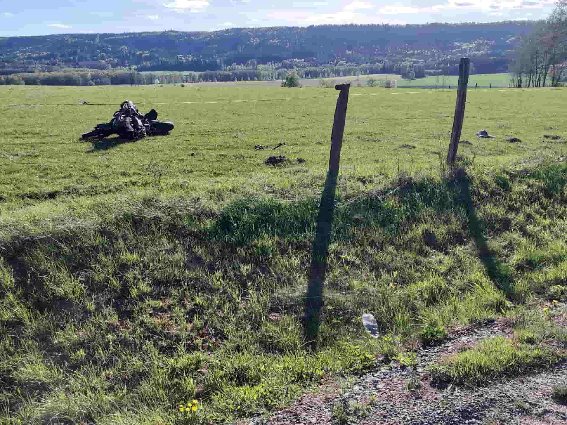 Záchranáři poskytli zraněnému řidiči nezbytnou přednemocniční péči a následně rozhodli o jeho transportu do nemocnice leteckou cestou. Vrtulník tak výrazně zkrátil čas potřebný k předání pacienta do rukou lékařů. Motocykl byl po nehodě zcela zničen a zůstal ležet mimo komunikaci.