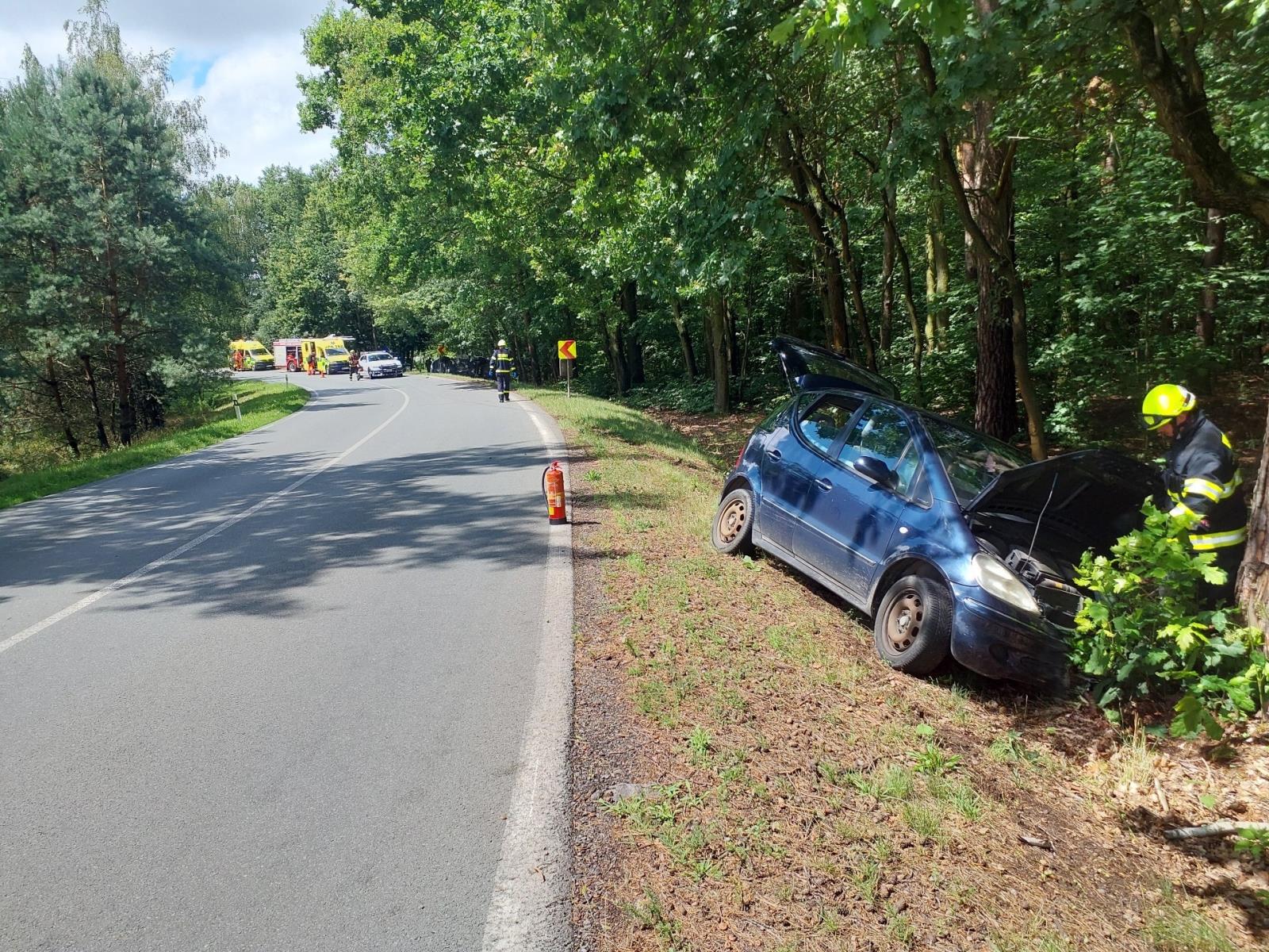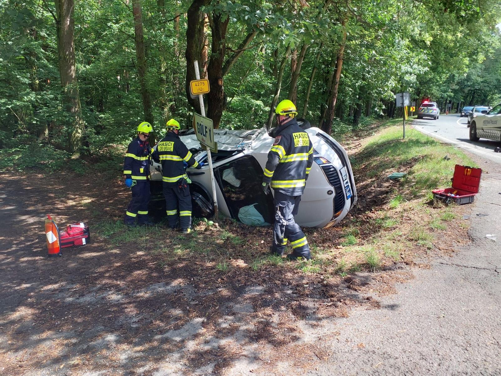 V Lázních Bohdaneč vyjeli hasiči na pomoc k dopravní nehodě u golfového hřiště. Jedno vozidlo se převrátilo na bok a druhé skončilo mimo komunikaci. Na místě zasahovaly všechny složky IZS. Došlo ke zranění tří osob, které si převzala do péče Zdravotnická záchranná služba. U vozidel byla provedena protipožární opatření.