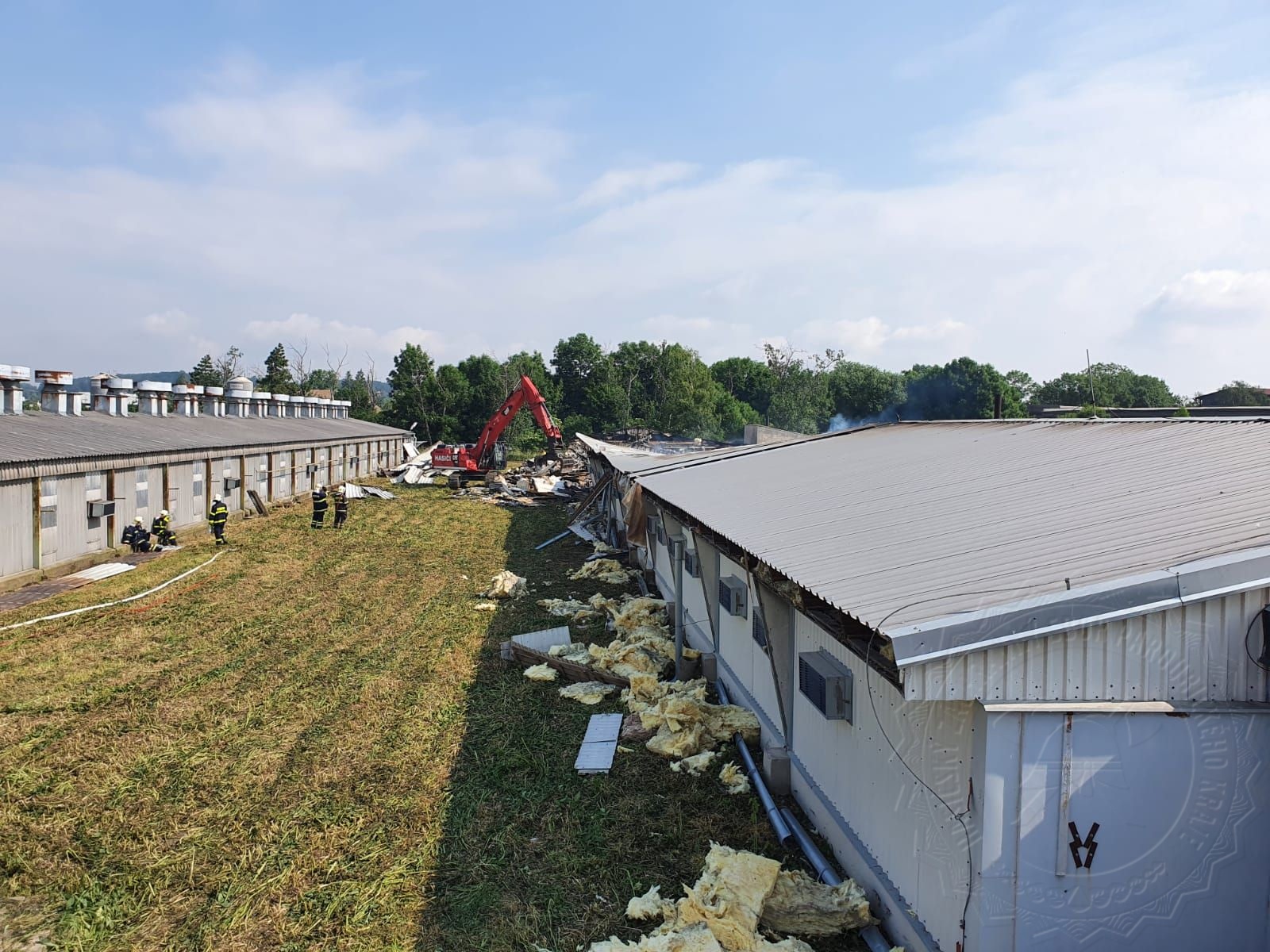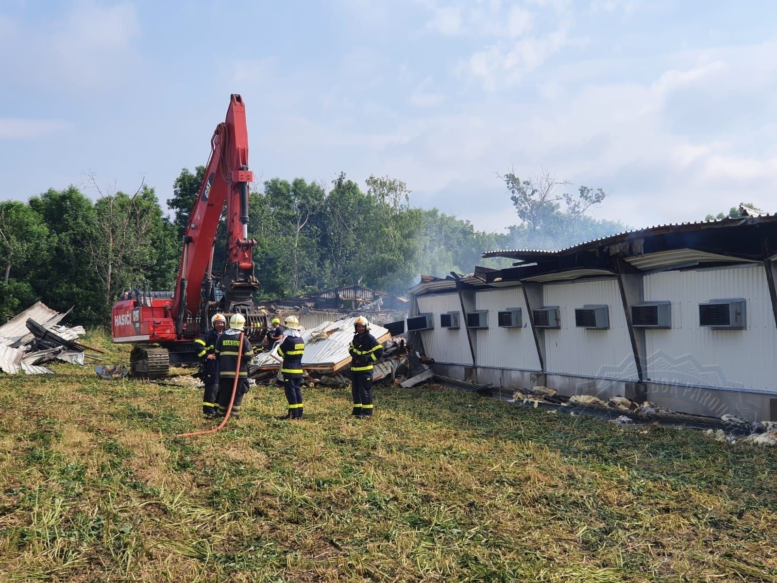 Pro ochranu kuřat byl do haly vháněn čerstvý vzduch pomocí přetlakové ventilace a tím se část kuřat zachránila. Skrytá ohniska mezi stropem a střešní konstrukcí byla postupně odhalována pomocí termokamery a postupně hašena. Zřízena musela být kyvadlová doprava vody na místo požáru.