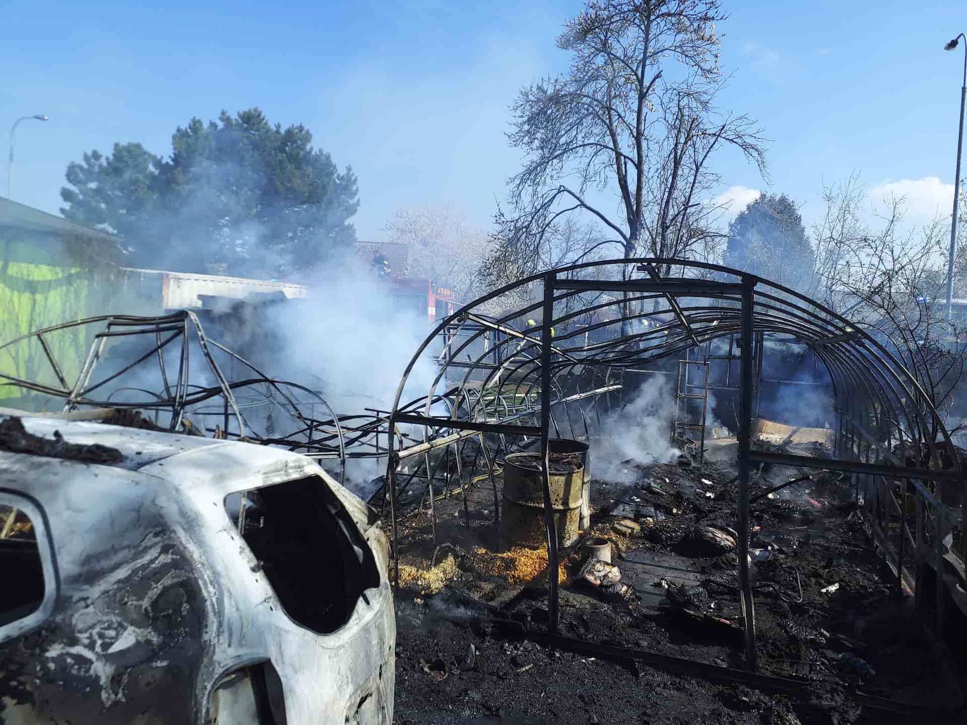 Požár skleníku se v sobotu rychle vymkl kontrole a zasáhl i vedle stojící automobil. Plameny se šířily velmi rychle a během krátké chvíle pohltily další majetek. Hrozilo, že se oheň rozšíří i na okolní objekty, což by znamenalo výrazně větší škody.