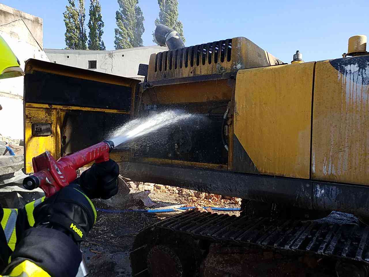 Hasiči zasahovali v odpoledních hodinách u požáru bagru v Pardubicích. Firma zde prováděla likvidaci bývalého areálu lihovaru. Při likvidačních pracích pásové rypadlo po pěti hodinovém provozu převáželo betonové panely. Strojník pásového rypadla uvedl, že se se strojem otáčel, když uslyšel ránu, poté pocítil teplo, když otočil hlavu, uviděl šlehající plameny mezi kabinou a ramenem pásového rypadla. Strojník poté rychle vyskočil ze stroje a volal hoří. Na dvoře se pohybovali kolegové, kteří běželi pro hasící přístroje. Strojník bagru doběhl k hadici (C s proudnicí), kterou měli pracovníci připravenou ke skrápění prachu při demolici a spolu s dvěma kolegy začali hasit pásové rypadlo až do příjezdu jednotky hasičů.