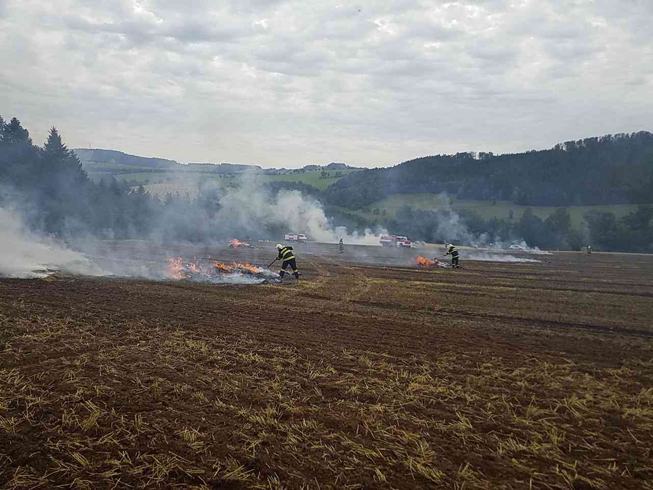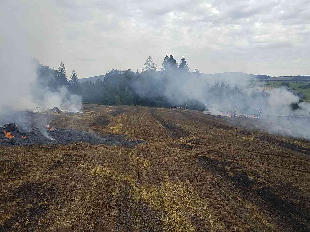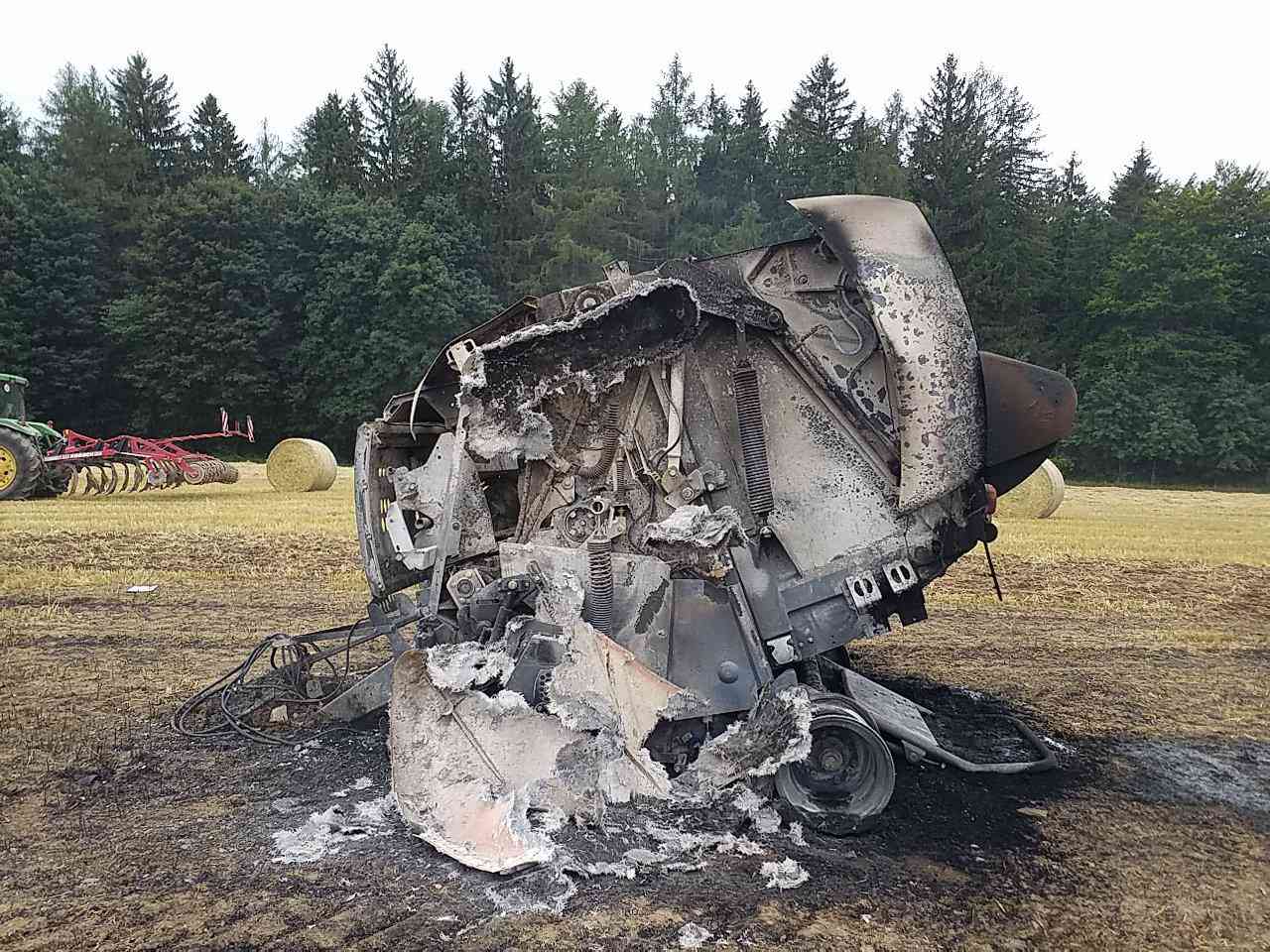 Jednalo se o požár lisu na slámu a strniště s balíky slámy. Řidiči traktoru se podařilo lis včas odpojit, a tak škoda na traktoru nevznikla. Hasiči dostali požár pod kontrolu 1.22 hodin od nahlášení události na krajské operační a informační středisko hasičů. Za dalších 17 minut byl požár zcela zlikvidován. Na místo se dostavil vyšetřovatel hasičů, který zjistil, že požár s největší pravděpodobností způsobilo zadřené ložisko. Škoda byla předběžně vyčíslena na 1 120 000 Kč – 1 100000 Kč je škoda na lisu a 20 000 Kč je škoda na 40 kusech balíků slámy.