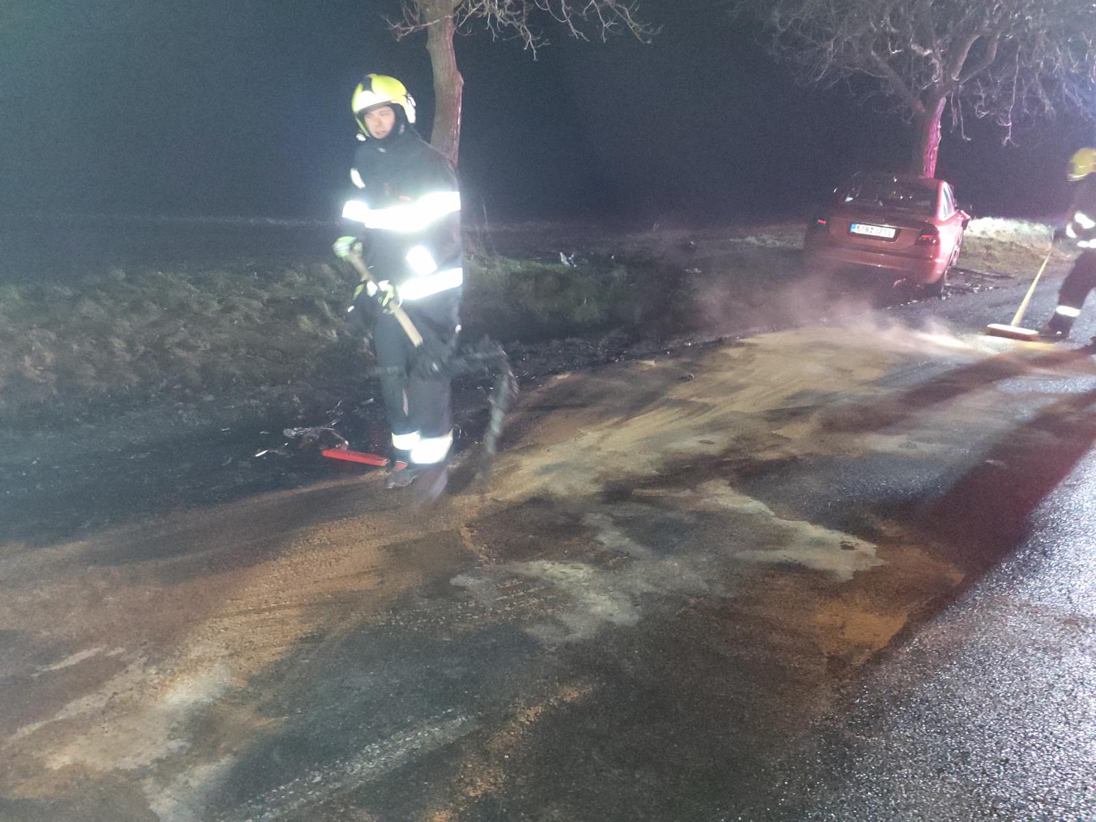 Pod kontrolu se hasičům požár podařilo dostat za 6 minut. Hasiči po uhašení zasypali provozní kapaliny a po zdokumentování dopravní nehody policií vozovku uklidili.