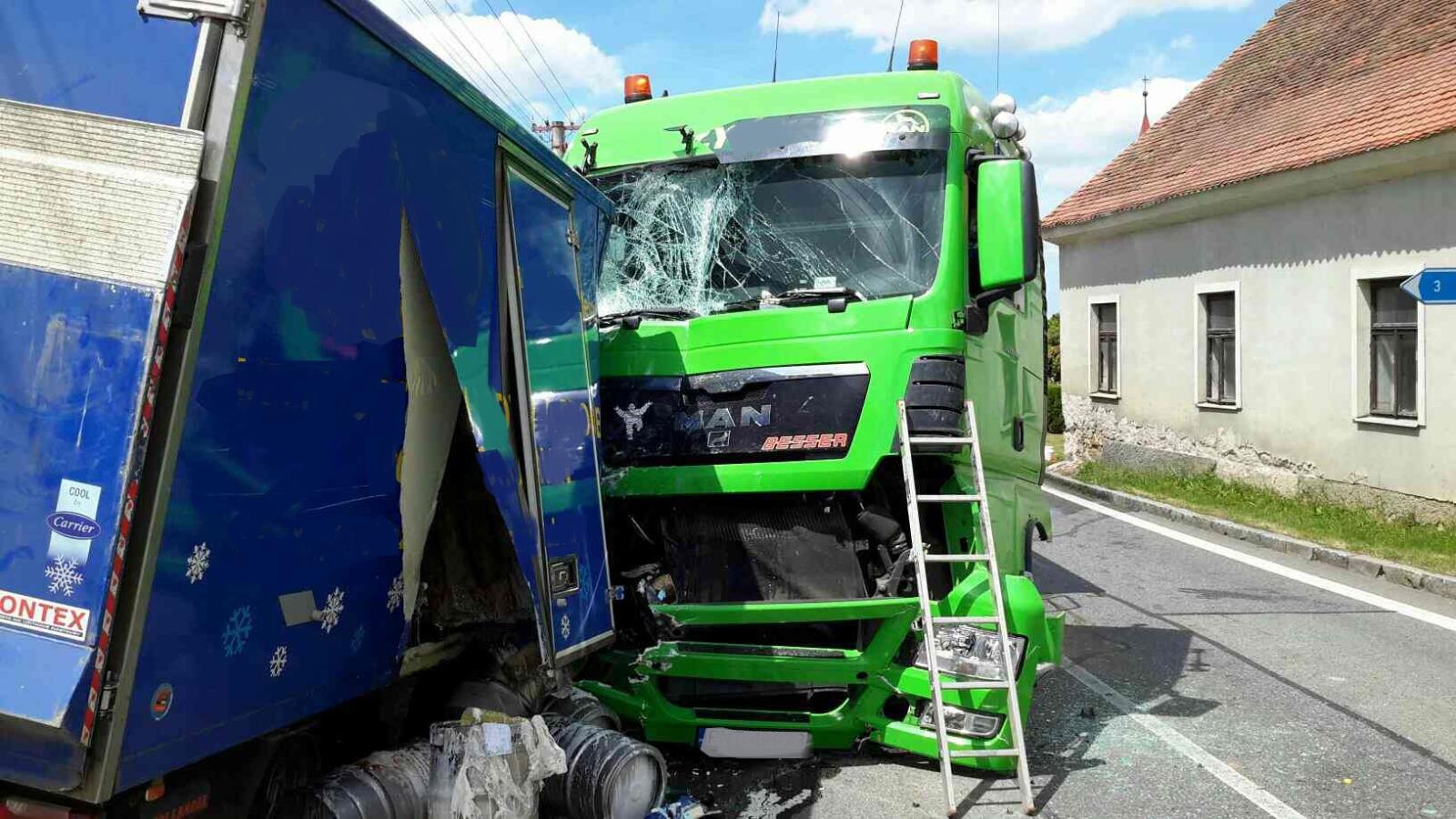 Po střetu kamionu s dodávkou hasiči likvidovali uniklou naftu