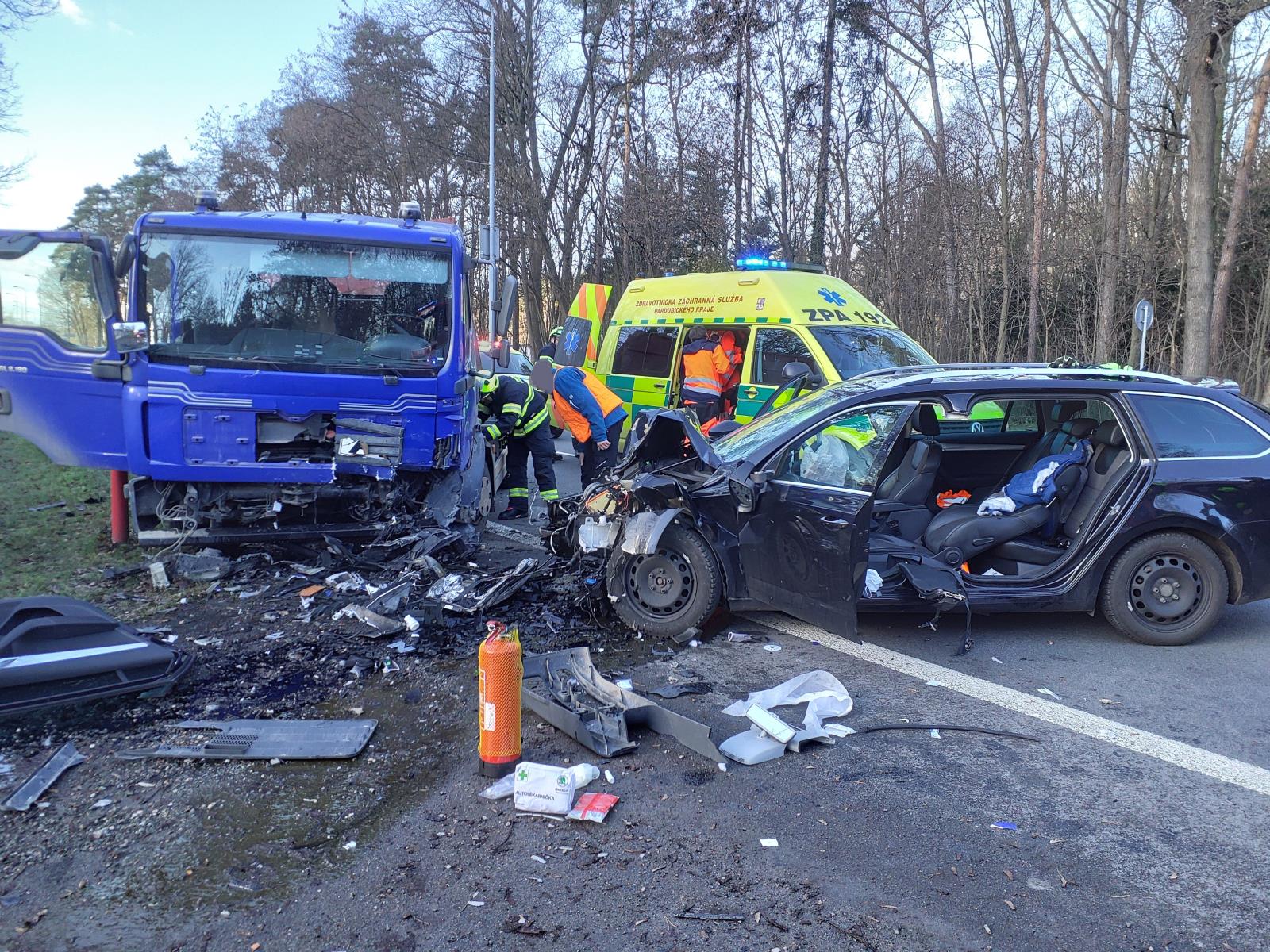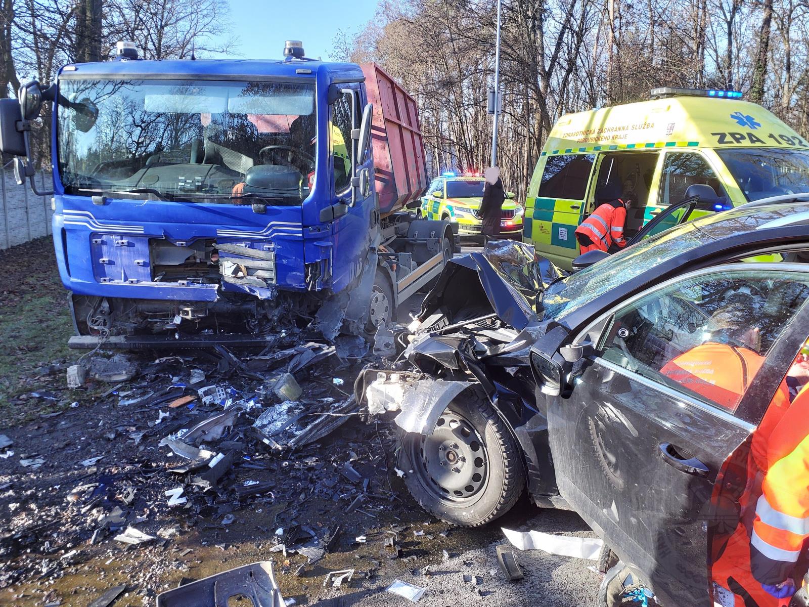 Po střetu nákladního vozu s osobním hasiči museli řidiče ´vystříhat´