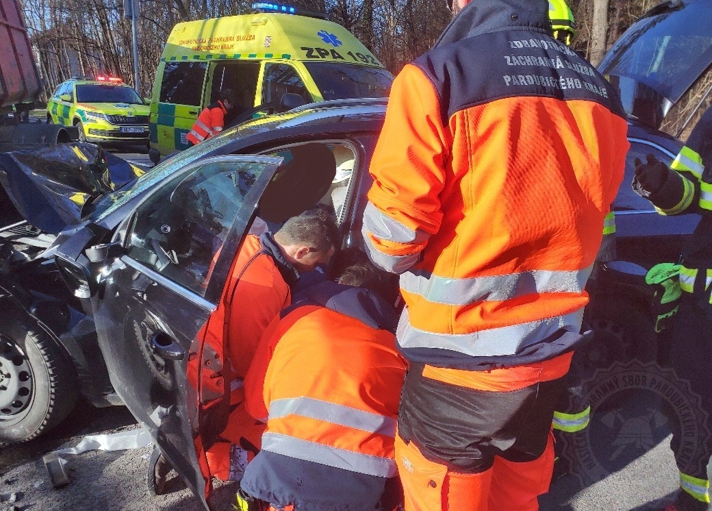 K nehodě osobního a nákladního automobilu vyjížděla ve čtvrtek 5. ledna dopoledne jednotka hasičů z Pardubic. Nehoda se stala na silnici z Pardubic směrem na Přelouč (zhruba v úrovni dostihového závodiště). Hasiči ihned po příjezdu na místo museli z vozu vyprostit zaklíněnou osobu pomocí hydraulického vyprošťovacího zařízení. Zraněný řidič byl ihned předán do péče zdravotníkům.