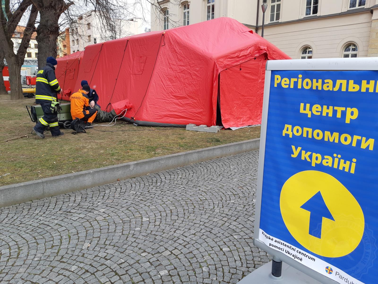 Vlak s dalšími asi třemi stovkami uprchlíků by měl do Pardubic na hlavní nádraží dorazit v pondělí 7. března po páté hodině ranní. Profesionální hasiči tak v podvečer začali na Komenského náměstí v Pardubicích stavět dva obrovské stany, protože do budovy bývalé reálky, kde naplno funguje Krajské asistenční centrum pomoci Ukrajině, se všichni nevejdou. „Čekáme větší příliv Ukrajinců. Připraven je evakuační autobus pro jejich transport. Postavené stany budou sloužit jako čekárna. Oba stany jsou plně vytápěné i osvětlené,“ vysvětluje večerní manévry na Komenského náměstí v Pardubicích plk. Ing. Josef Jelínek, náměstek pro prevenci a civilní nouzovou připravenost HZS Pardubického kraje.
