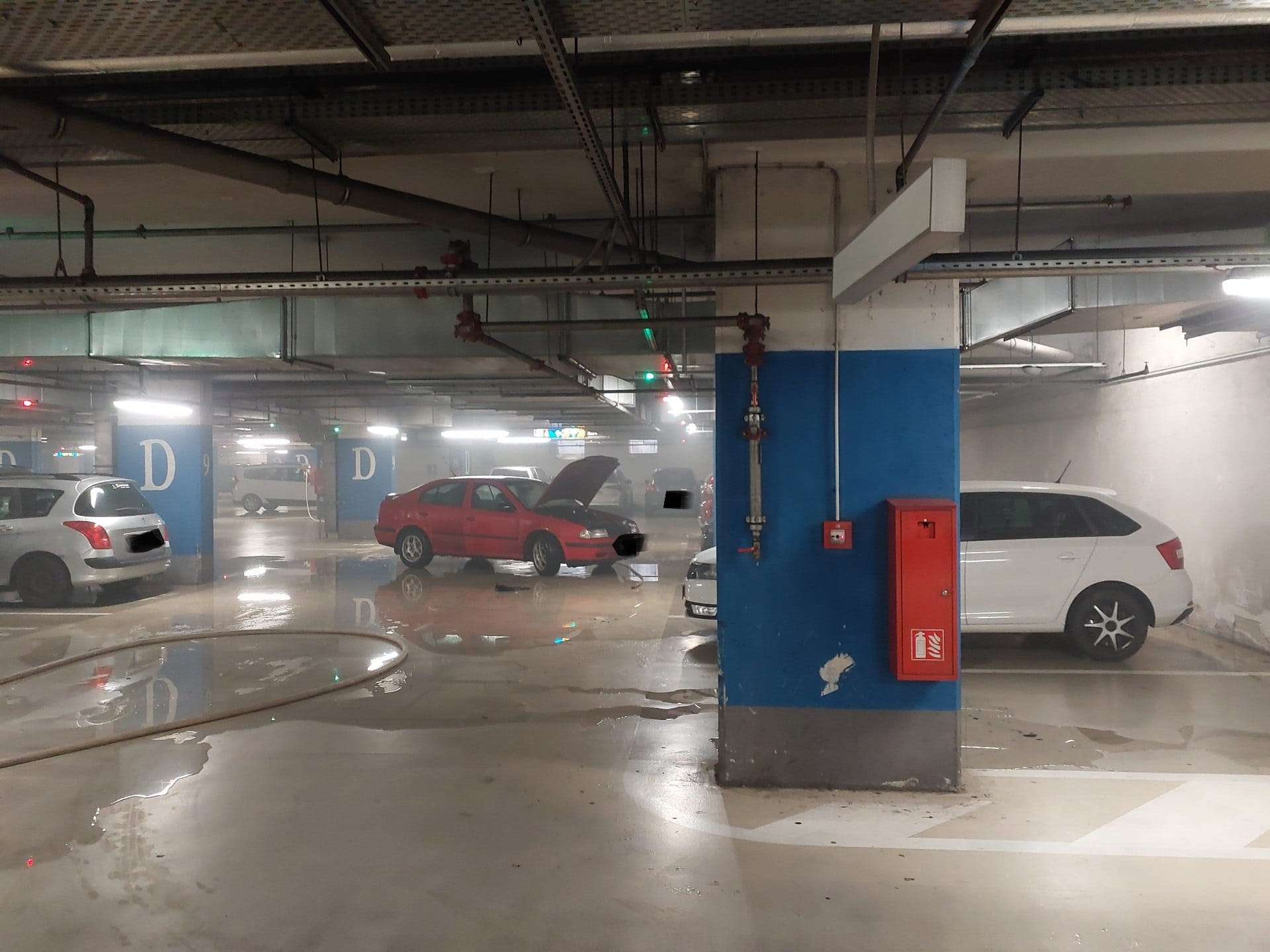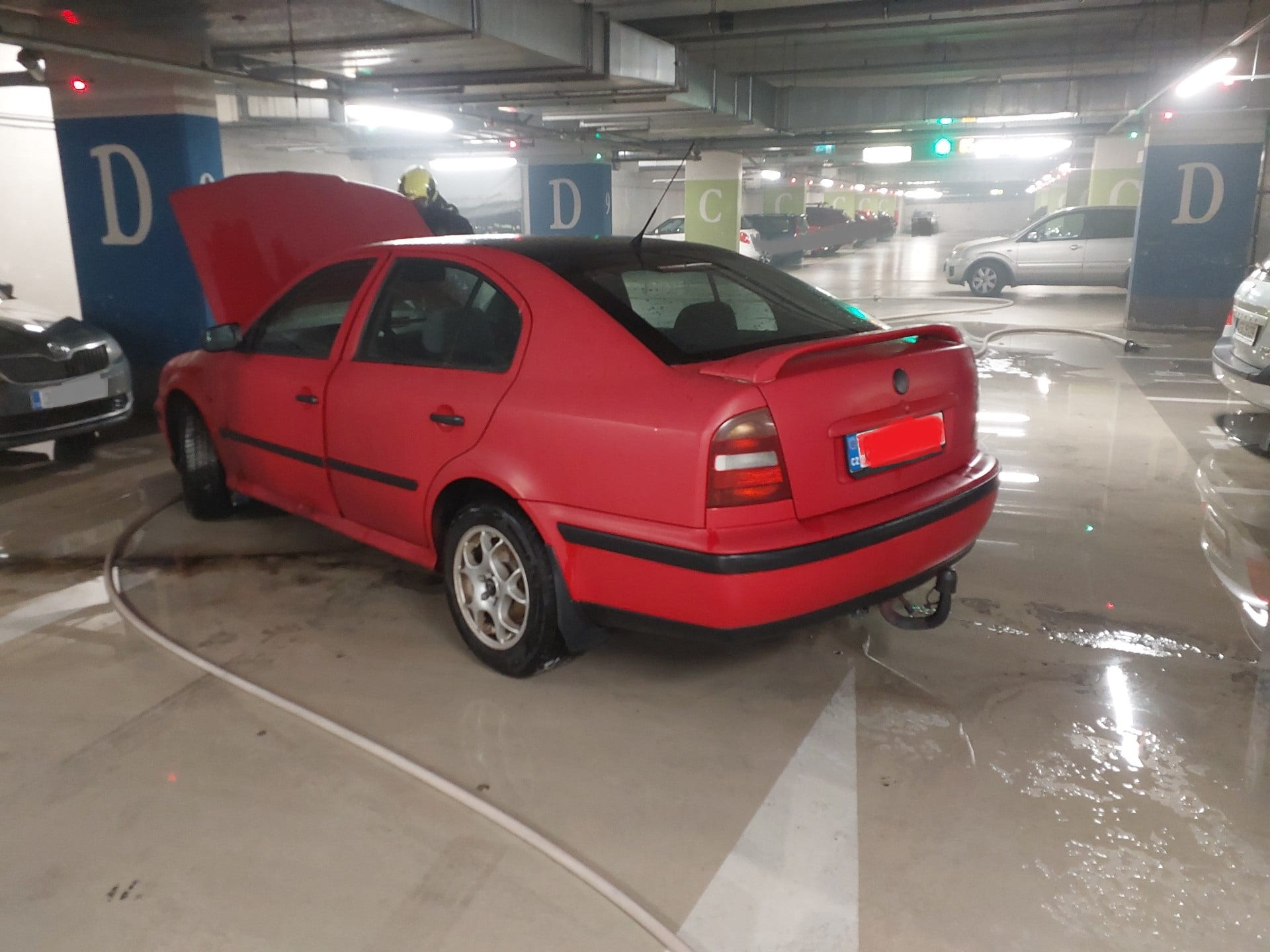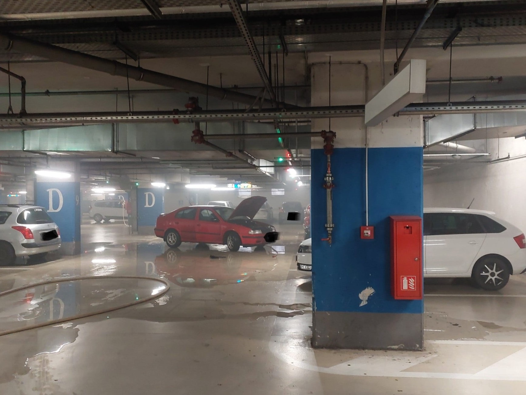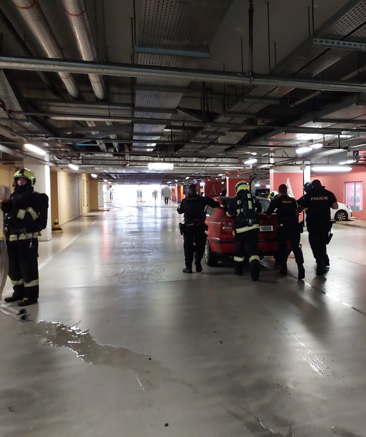 Požár auta v podzemním parkovišti si vyžádal zásah hasičů