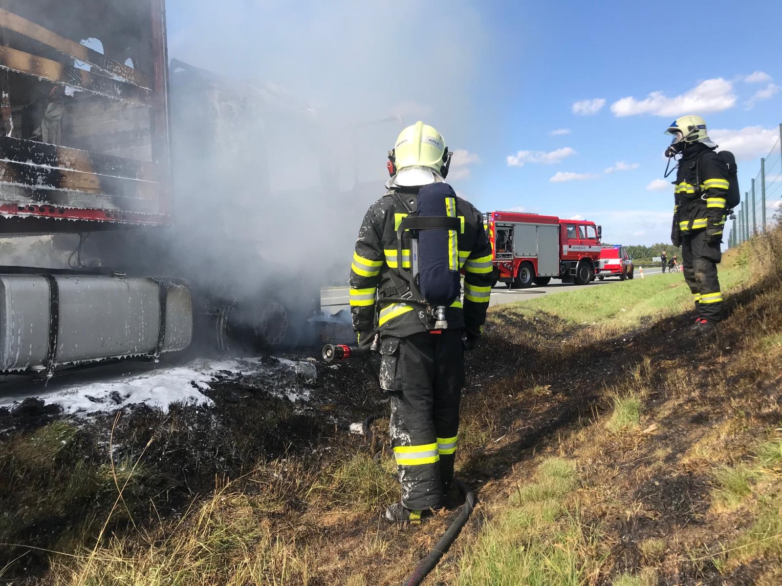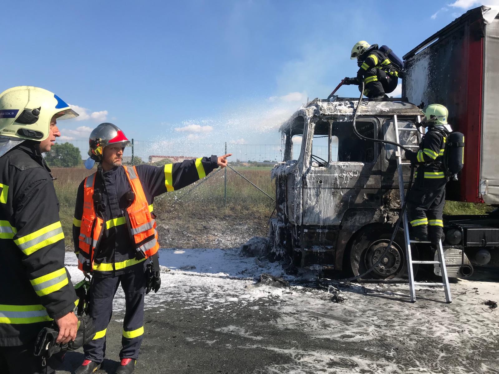 Požár kabiny kamionu se podařilo hasičům dostat pod kontrolu v 14.24 hodin a zcela zlikvidován byl v 14.57 hodin. Kabinu celou zničily plameny. Návěs, který byl v době požáru prázdný, se podařilo uchránit. Na místě vyšetřovatel, který zjišťoval příčinu vzniku požáru i výši škody.