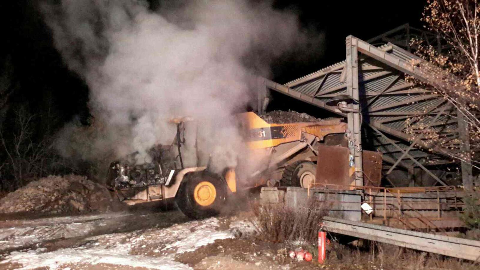Dále museli hasiči hned řešit únik hydraulického oleje.  Hořelo v motorové části a kabině nakladače, který slouží k převozu kamenů.