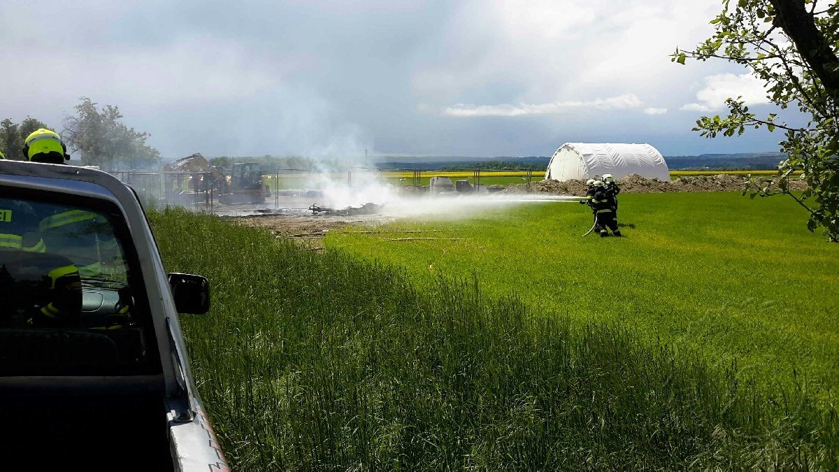 Na boj s plameny hasiči použili dva proudy vody. V karavanu se ale nacházely další tři propanbutanové lahve (1x 2 kg a 2x 10 kg), které musely jednotky ochlazovat.