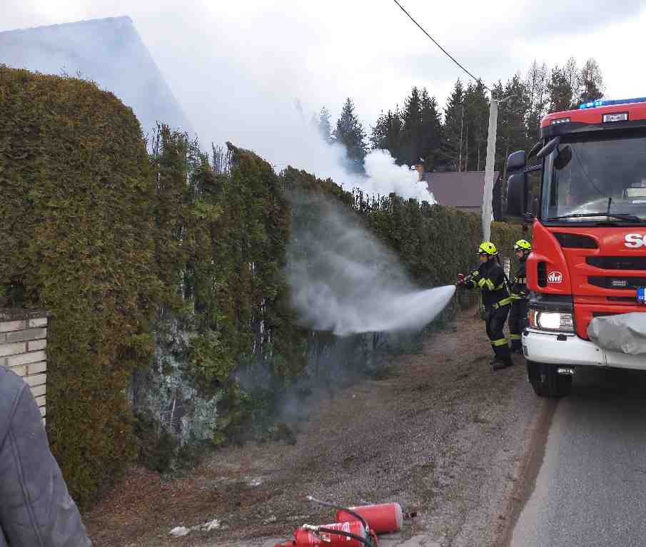 Do obce Vortová na Chrudimsku vyjížděli profesionální i dobrovolní hasiči ze stanic Hlinsko a Vortová. Jednalo se o zhruba 20 metrů plotu vzrostlých tůjí v počtu  28 ks, které hasiči uhasili vysokotlakem. Na místo zásahu byl povolán vyšetřovatle příčin požárů, který škodu předběžně vyčíslil na 30 tis. Kč. Včasným zásahem byl však uchráněn majetek ve výši cca 60 tis. Kč. Příčina požáru je zatím v šetření . Po uhašení bylo místo předáno Policii ČR a jednotky se vrátily na základny.