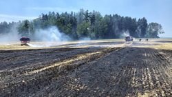 Požár vznikl při žňových pracích, kdy se do stroje dostal kámen. Škoda byla předběžně vyčíslena na 30 tisíc korun, uchráněno bylo obilí na poli v hodnotě 60 tisíc korun a přilehlý les byl uchráněn ve výši přibližně 500 tisíc korun.