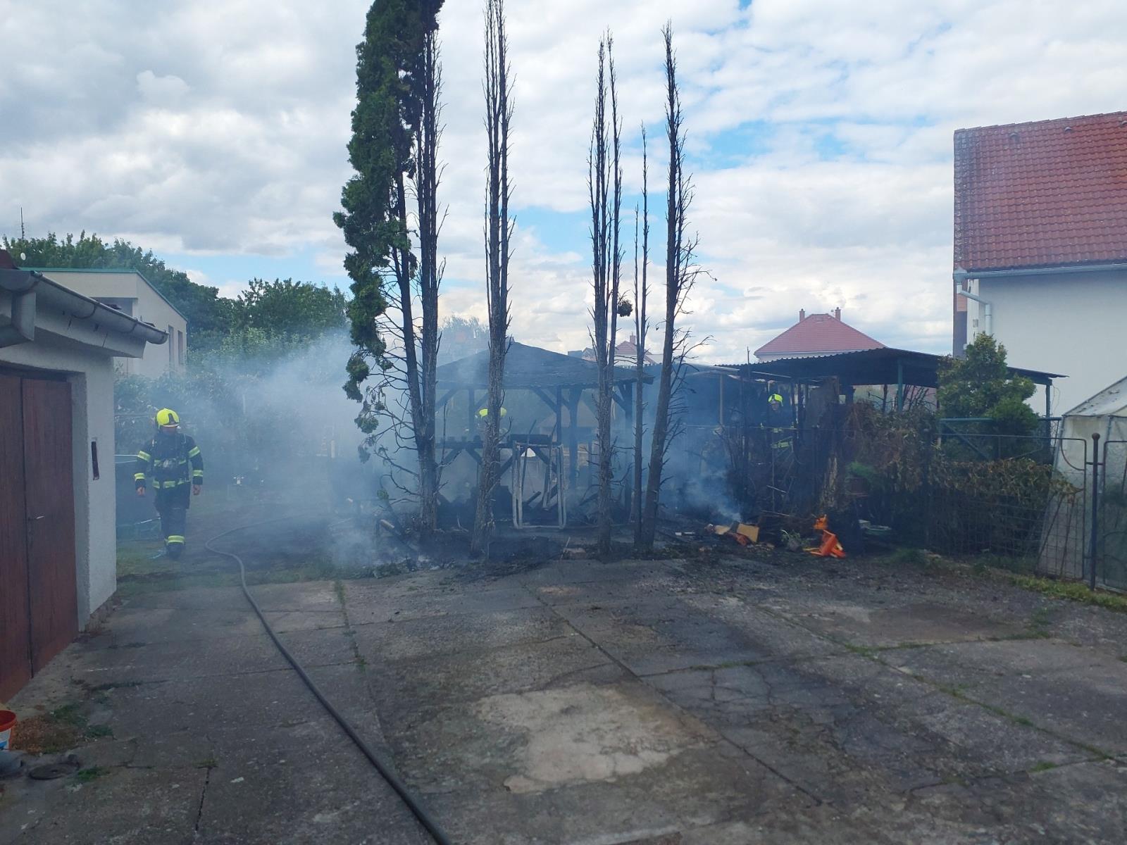 Požár přístřešku v Přelouči zaměstnal několik jednotek hasičů
