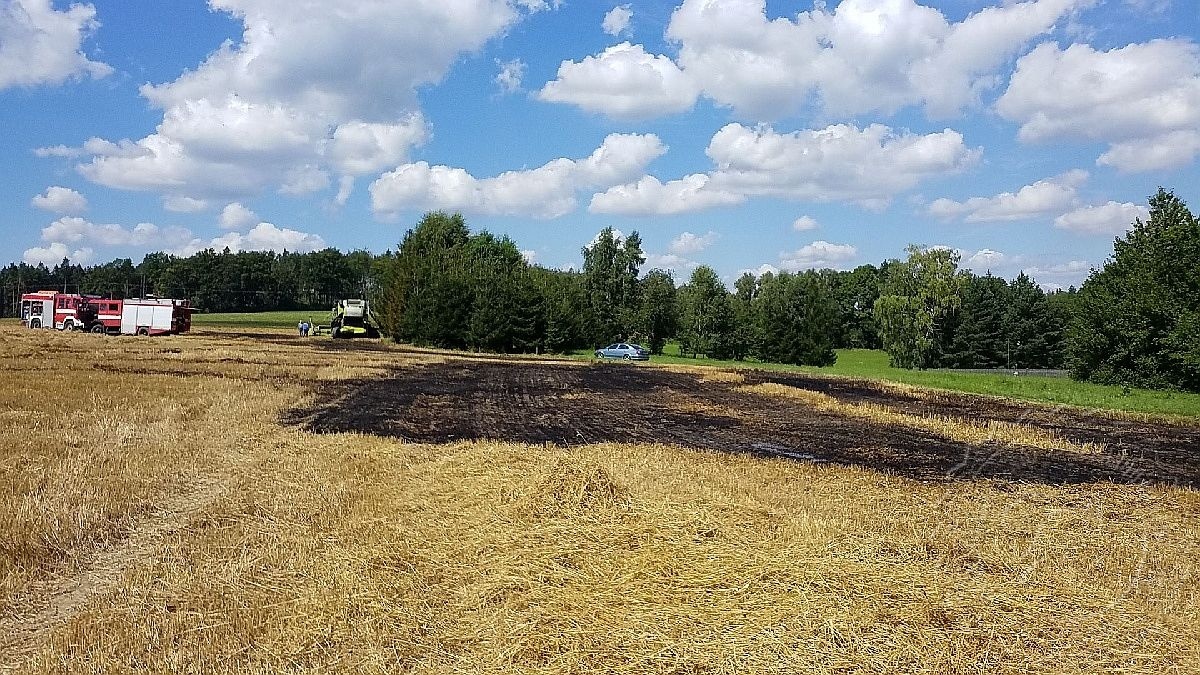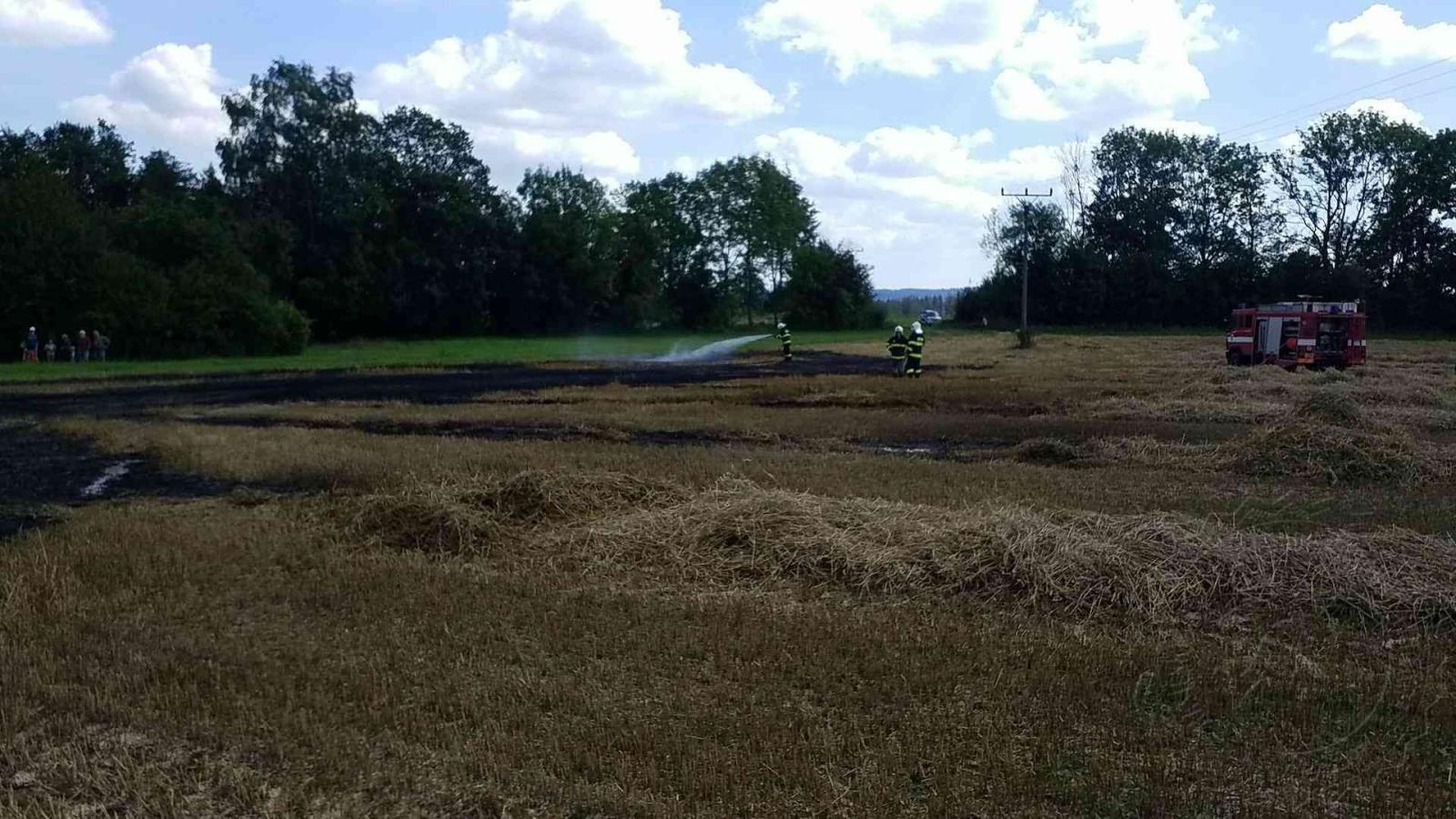 Jednalo se o požár strniště a plameny poškodily i kombajn, který byl zaparkovaný u pole. Hasiči měli oheň pod kontrolou ve 13.03 a zcela uhašen byl ve 14.54.