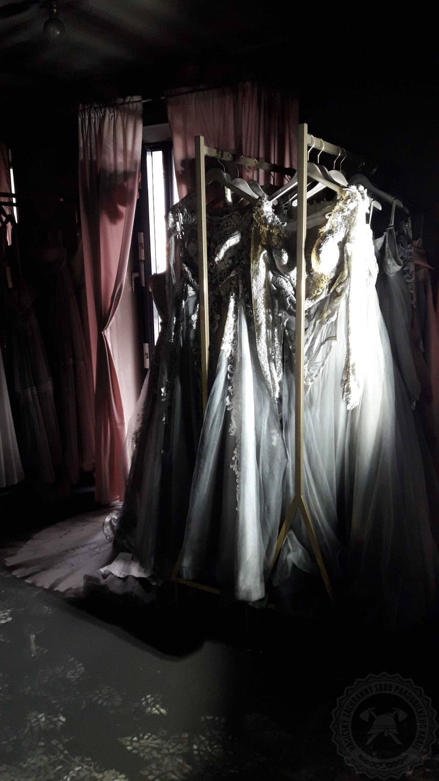 Svatební šaty v odstínu šedé až černé. Taková barva by se asi nelíbila žádné nevěstě, nebo myslíte, že ano? Šedé až černé jsou bohužel nyní svatební šaty v jednom ze svatebních salónů v Litomyšli. Důvodem jejich nového zbarvení je požár, který jsme likvidovali ve čtvrtek 17. listopadu.