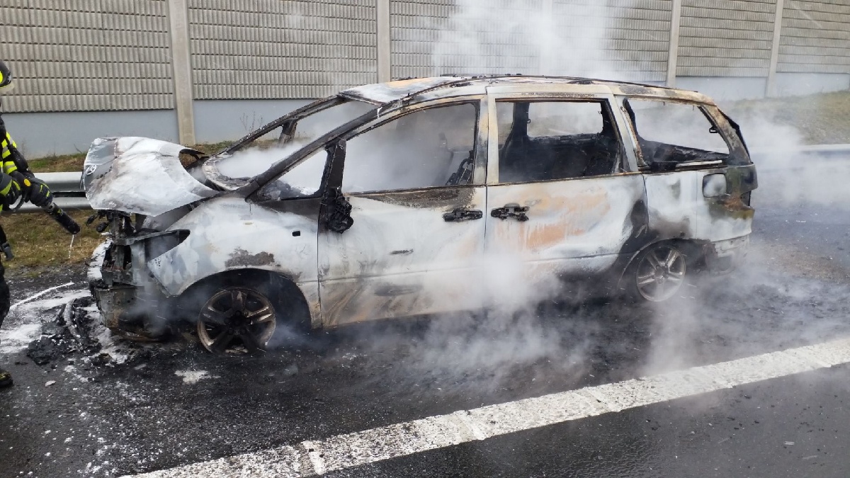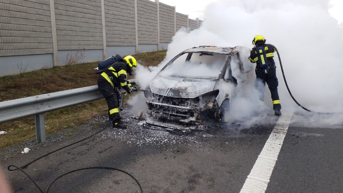 Na operační středisko byla přijata 5. 3. v 11:04 zpráva o požáru osobního automobilu Toyota Previa na dálnici D 35 ve směru na Prahu...