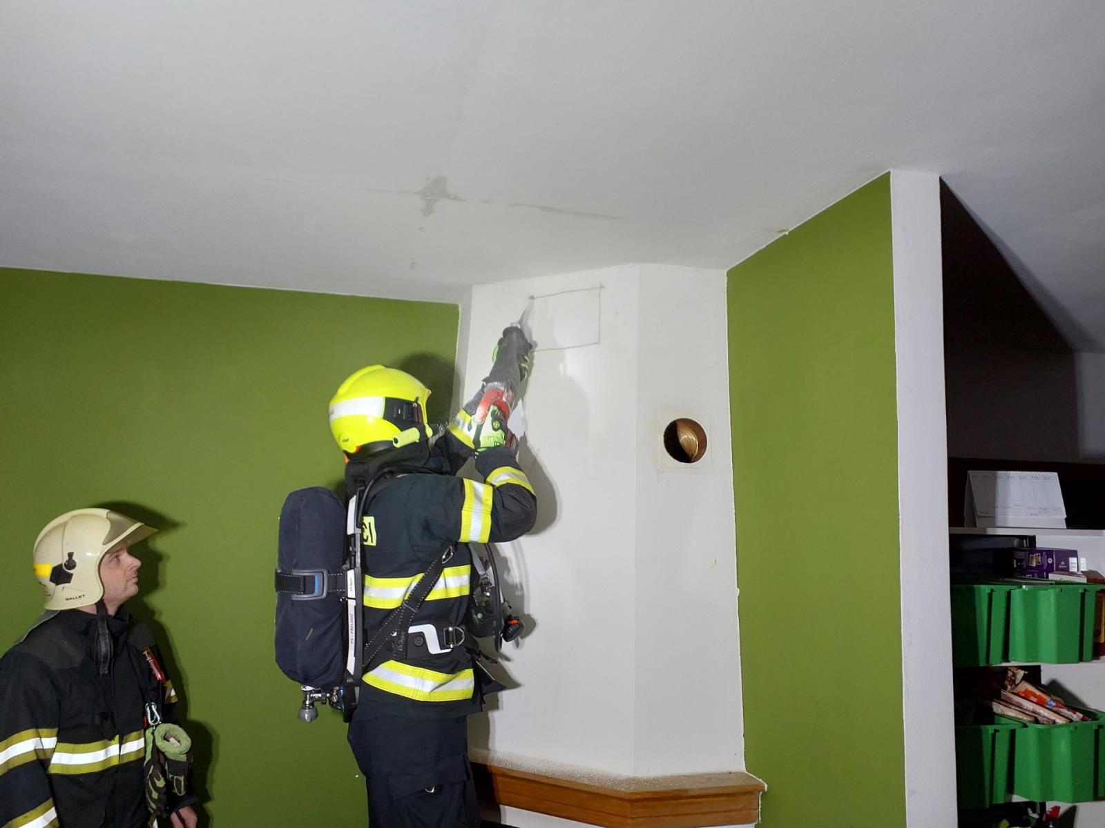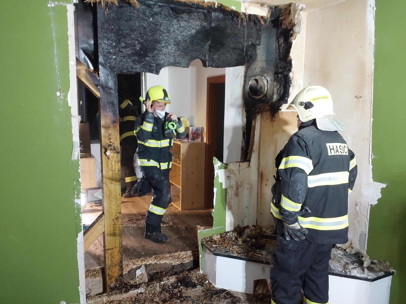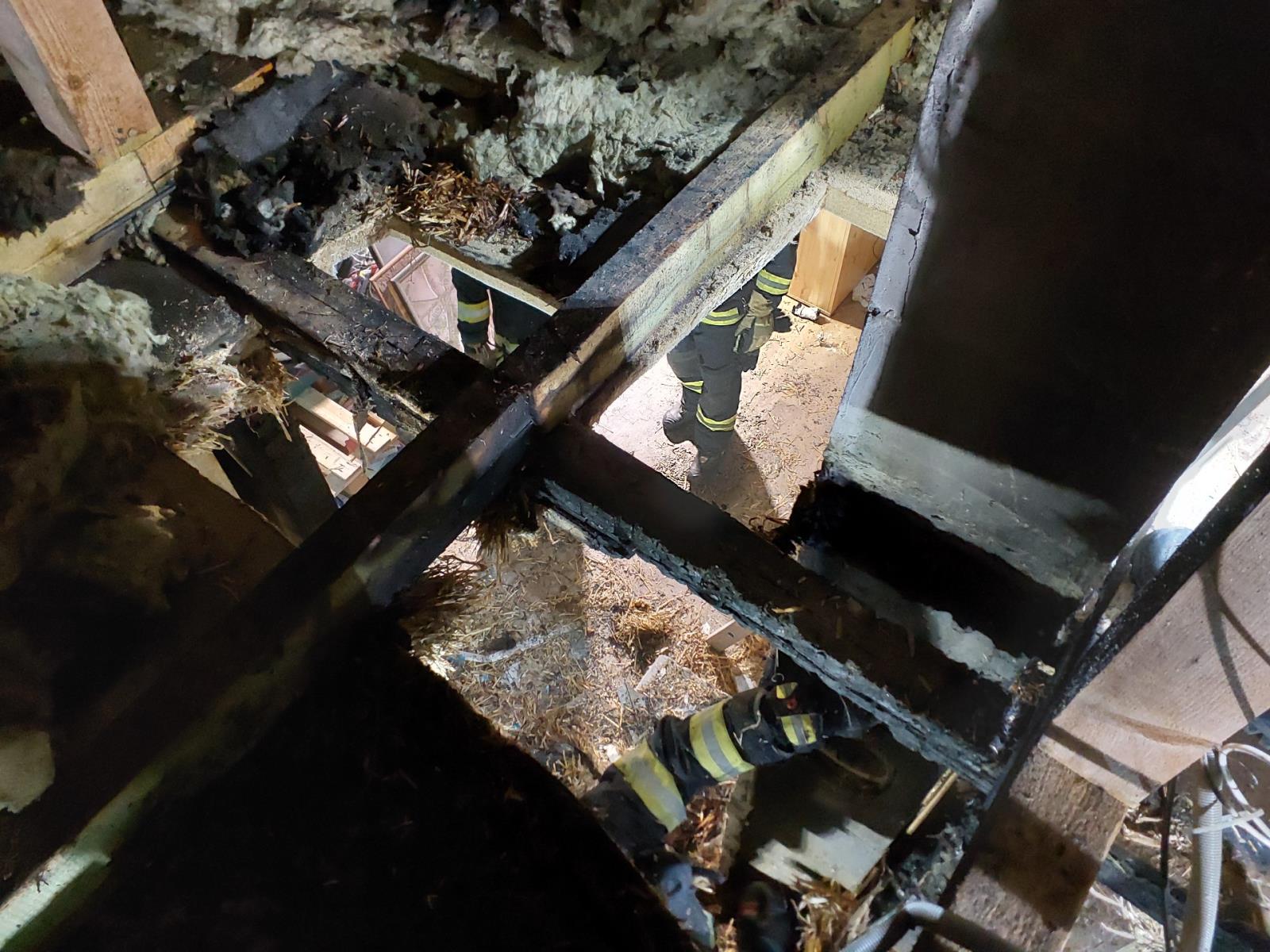 Další požár byl ohlášen v obci Stojice. Před pul čtvrtou na místo vyjížděla jednotka z Přelouče, Pardubic a dobrovolná z Heřmanova Městce, Choltic a Lipoltic. Požár v půdním prostoru hasiči dostali rychle pod kontrolu. Následně začalo hledání skrytých ohnisek a dohašování. Hasiči museli rozebrat sádrokartonovou stěnu, aby se dostali ke komínu, kde netěsnost byla pravděpodobně příčino.u požáru.