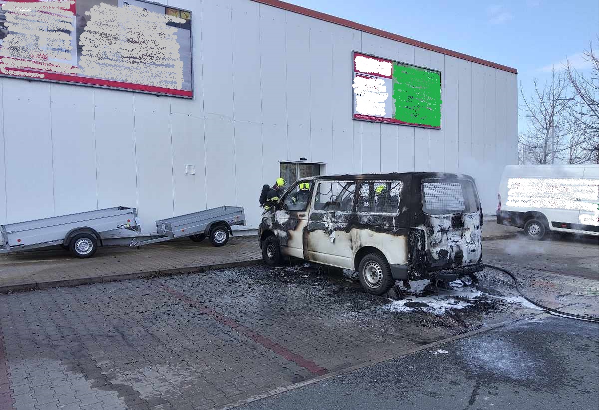 Na parkovišti u jednoho z obchodních domů v Pardubicích došlo ve čtvrtek 3. 3. 2022 k požáru dodávky. Hasiči ze stanice Pardubice vyjížděli k události ve 14.47 hod. a opouštěli místo zásahu v 15.35 hod. Dodávkový automobil VW Transporter T5, který byl po příjezdu jednotky již celý v plamenech, uhasili hasiči  vysokotlakem s pěnidlem. Po uhašení byly sorbentem zasypány uniklé provozní kapaliny okolo vozidla. Vyšetřovatel příčin požárů HZS Pardubického kraje vyčíslil škodu  ve výši 400 000,-- Kč a jako příčinu stanovil technickou závadu na vozidle. Ohořelý automobil si  převzal majitel, který byl na místě zásahu.