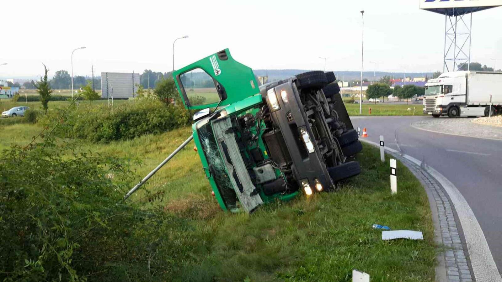 Chrudimští profesionální hasiči vyjížděli 25.8. 2017 v 6,35 hod. k dopravní nehodě ,,popelářského vozu". Řidič na kruhovém objezdu  u obchodního domu Tesco  v Chrudimi převrátil vozidlo na boka přitom porazil sloup veřejného osvětlení. U jedné zraněné osoby provedla jednotka předlékařské ošetření a Zdravotnická záchranná služba následně ošetřila ještě jednu osobu. Hasiči zabezpečili vozidlo proti požáru a proti dalšímu převrácení navijákem. Dopravu v místě nehody řídila kyvadlově Policie ČR. Odtahová služba Vápeník automobil vyprostila a po uklizení vozovky se hasiči vrátili na základnu.