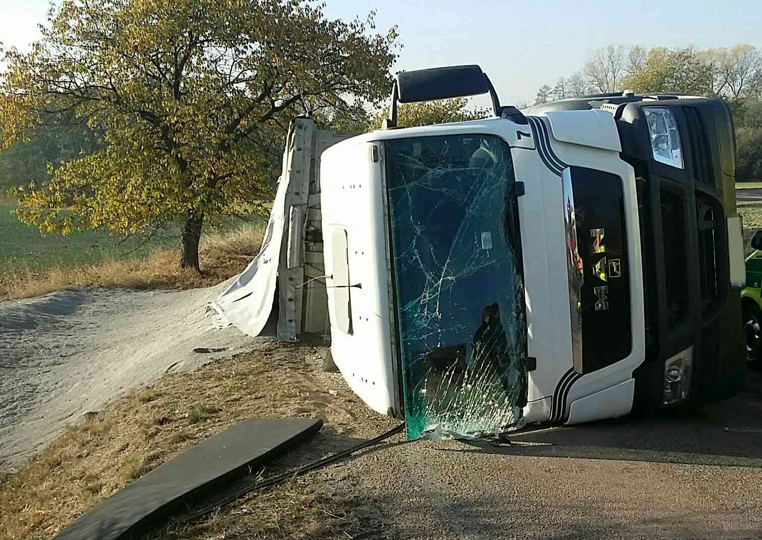 Při nehodě se z nákladního auta vysypal písek