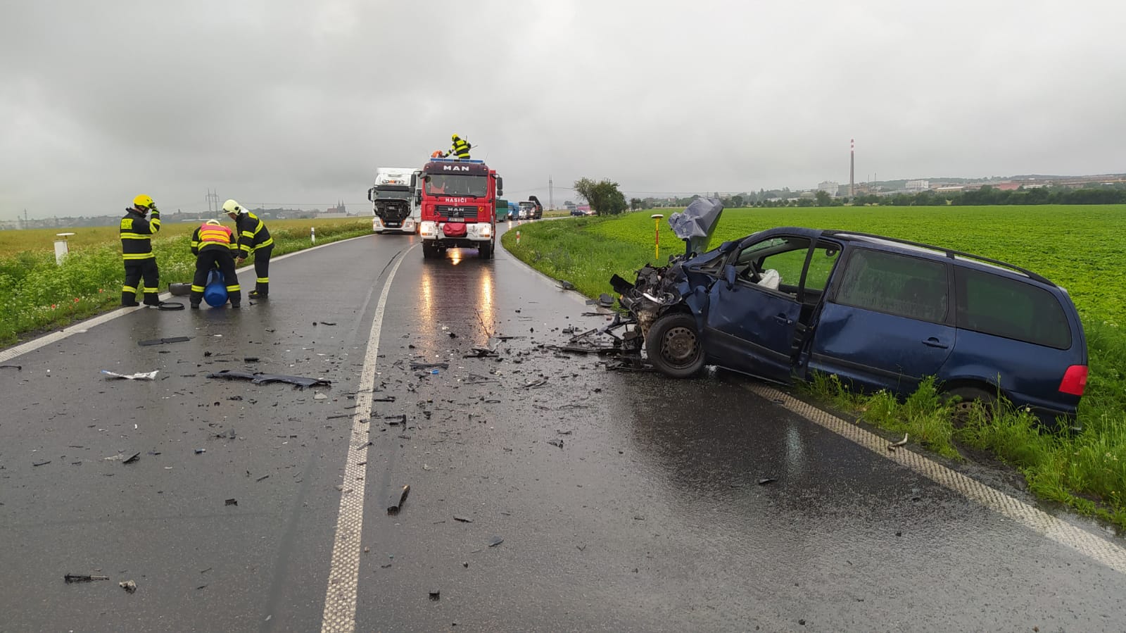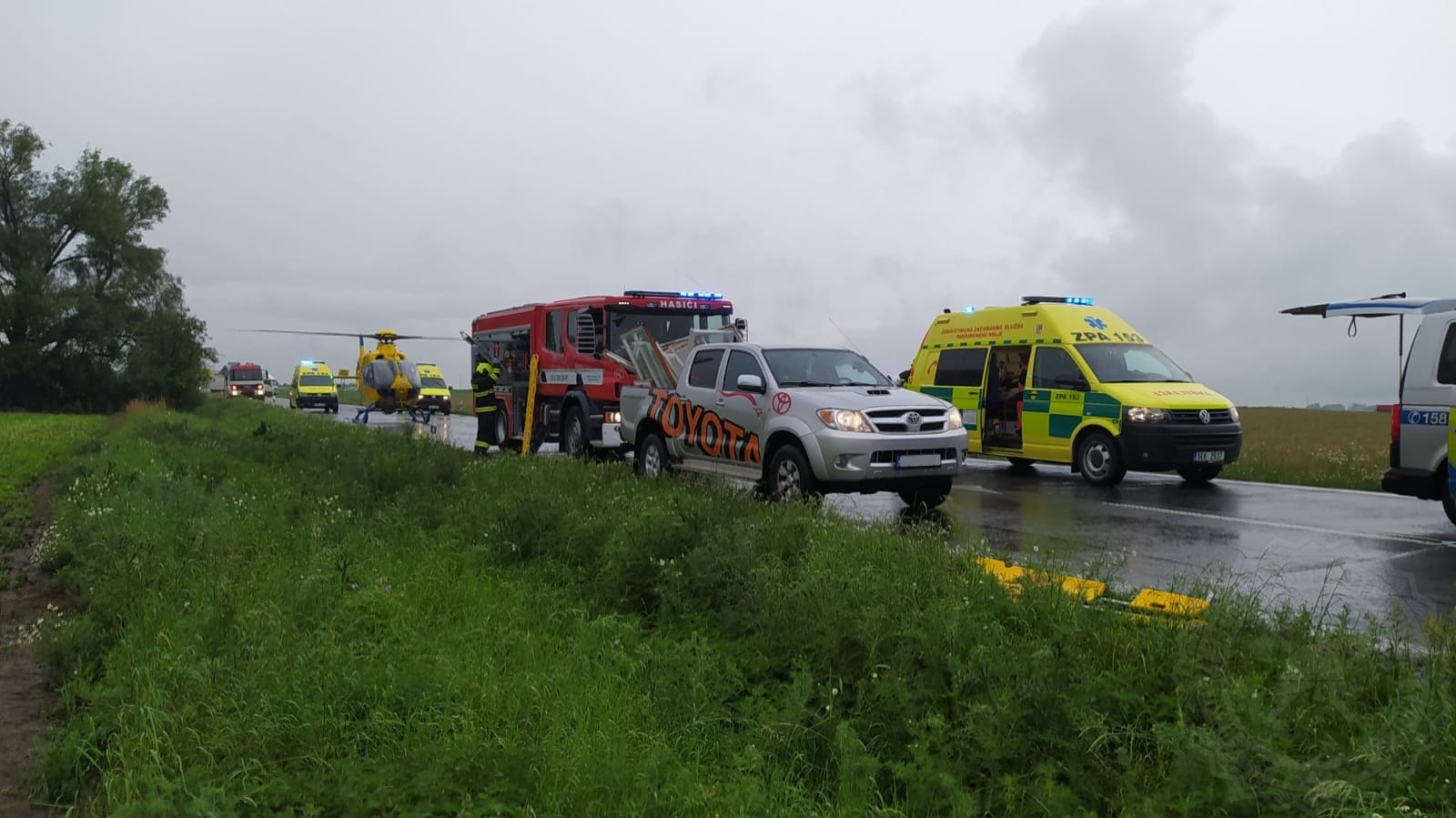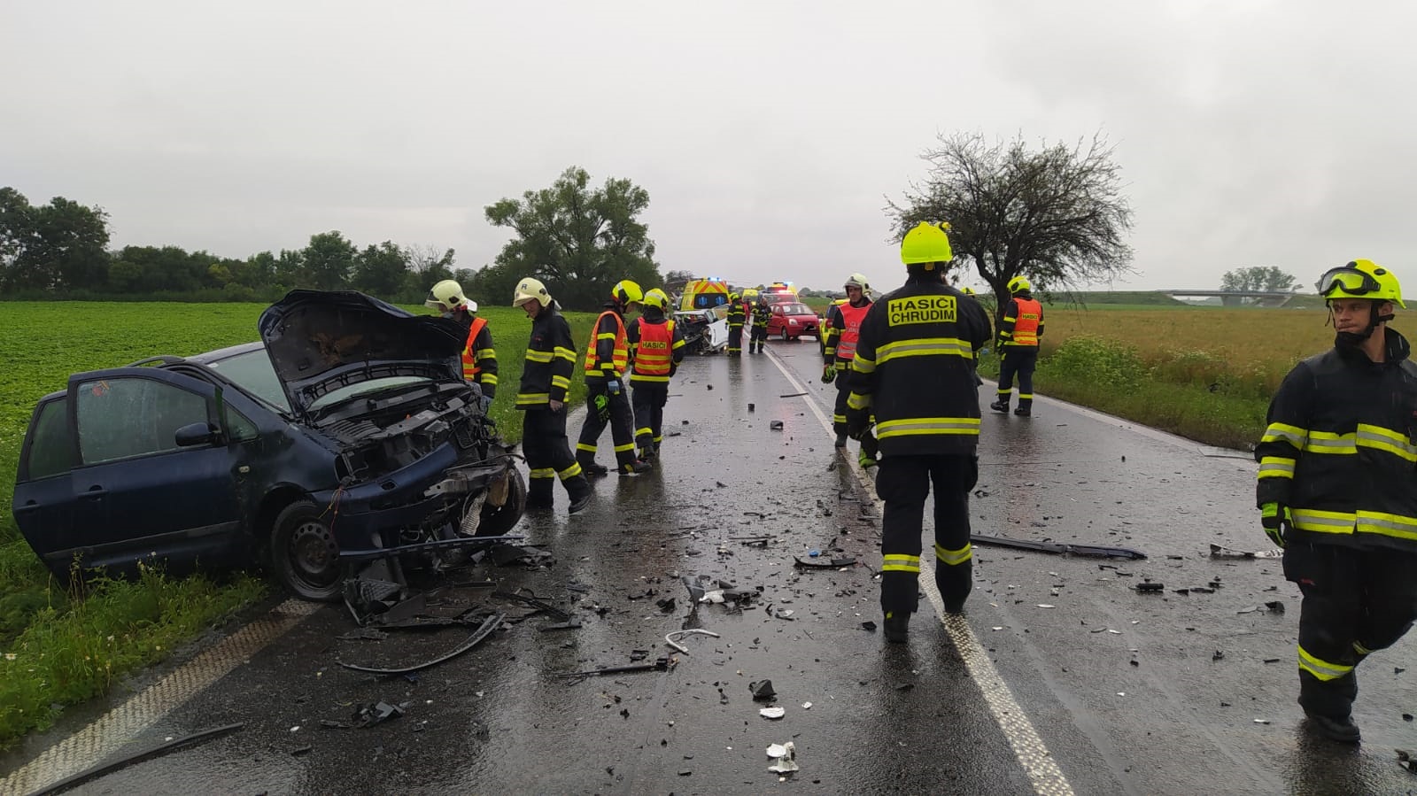 K nehodě na silnici z Medlešic do Chrudimi vyjížděli v pondělí dopoledne profesionální i dobrovolní hasiči z Chrudimi. Jednalo se o střet tři osobních vozidel. Na místě bylo šest osob zraněno. Hasiči pomáhali zdravotnické záchranné službě s ošetřením zraněných i jejich transportem nejen do sanitního vozu, ale i do vrtulníku Letecké záchranné služby. Dále jsme zabezpečili místo nehody, zajistili vozidla proti vzniku požáru, uniklý olej jsme posypali sorpční látkou tak, aby nedošlo k ekologické havárii.