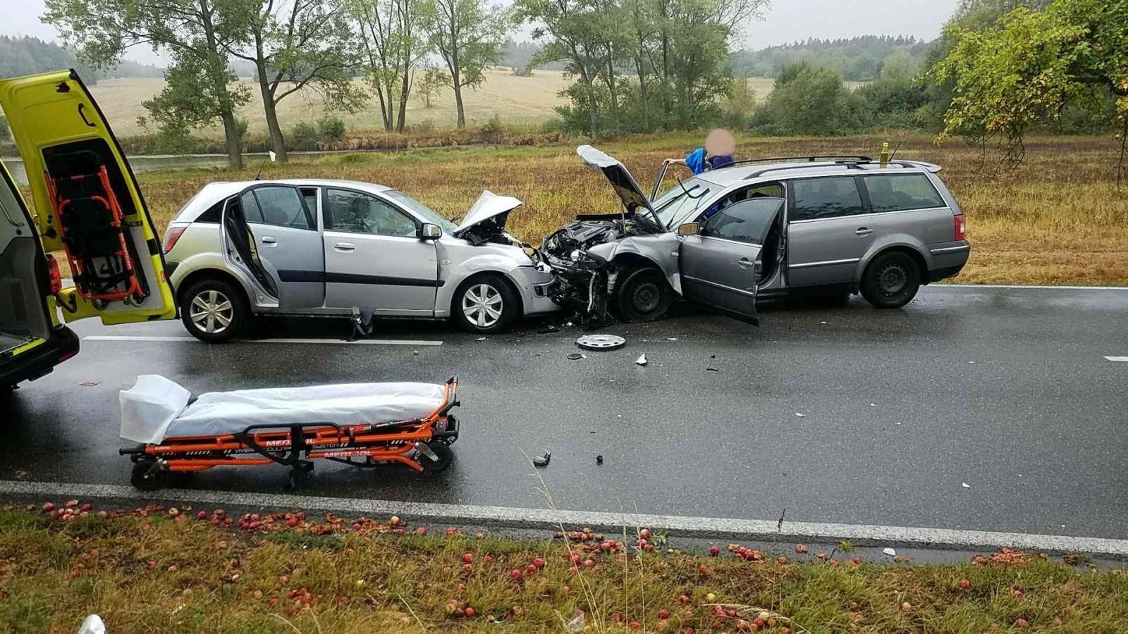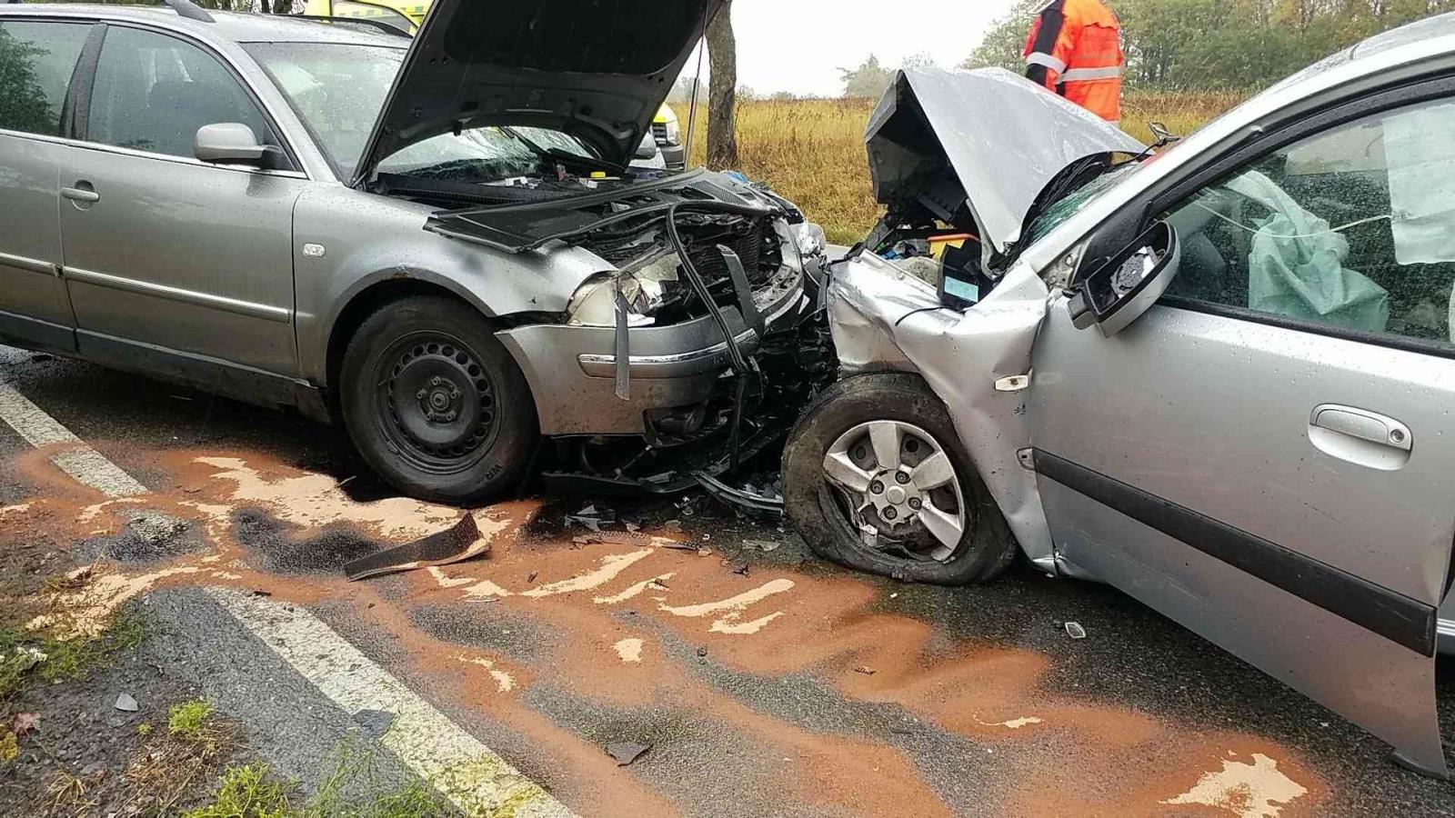 Jednalo se o čelní střet dvou vozidel a třetí automobil skončil mimo vozovku.