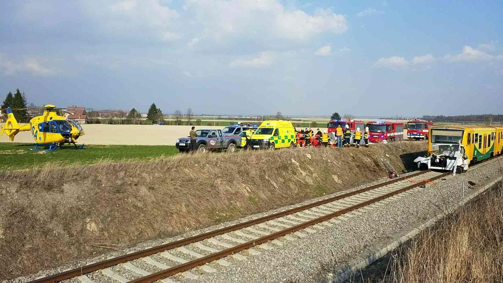 V osobním voze zůstali zaklíněni dva lidé. Ve vlaku cestovalo 109 osob. Cestující neutrpěli žádná zranění. Ze vrtulnik.jpgzdemolovaného vozu hasiči doslova vystříhali hydraulickými nůžkami dvě zaklíněné osoby, které byly transportovány do nemocnice. Na místě byl i vrtulník Letecké záchranné služby.