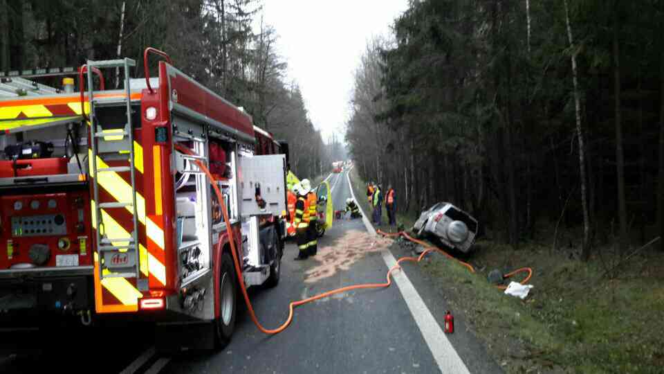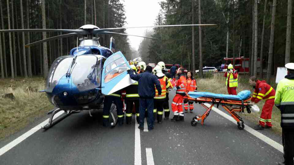 Řidič byl po vyproštění předán na nosítkách zdravotnické záchranné službě a následně vrtulníkem transportován do nemocnice.