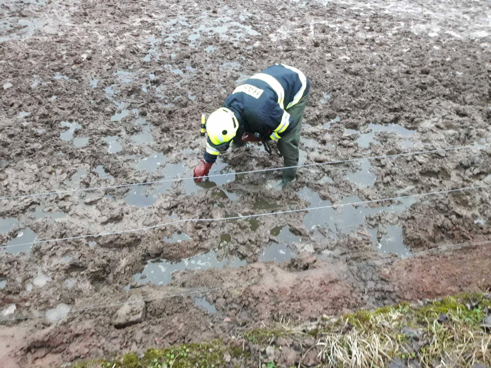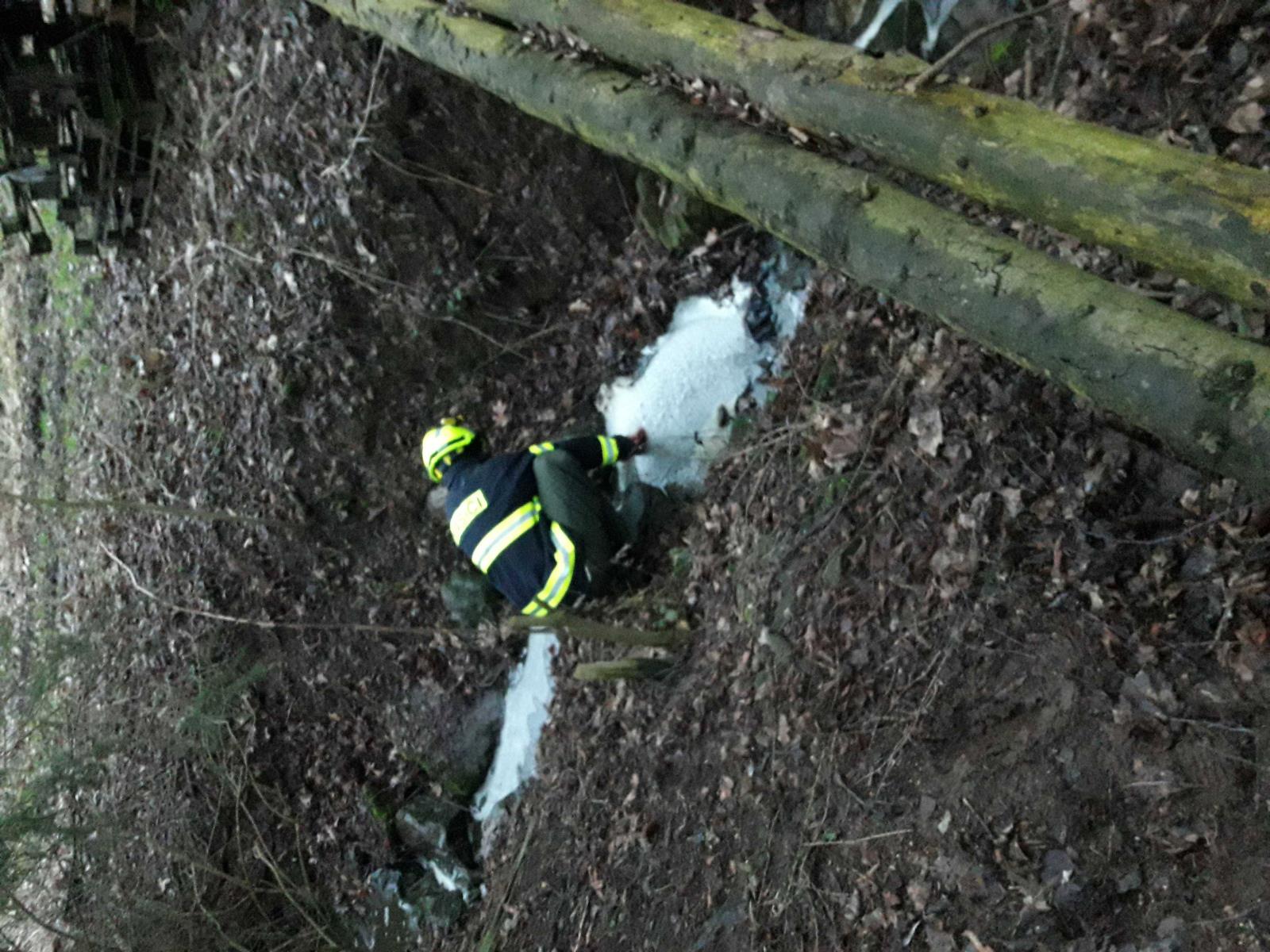 Po příjezdu na místo a prvotním průzkumu bylo patrné, že do potoka opravdu něco uniká. Dle slov velitele zásahu byl potok zakalený a voda zapáchala po čpavku. Začalo se tedy vyhledávat místo kudy se neznámá látka do potoka dostává. Vytipována byla 4 místa odkud hasiči odebrali vzorky.