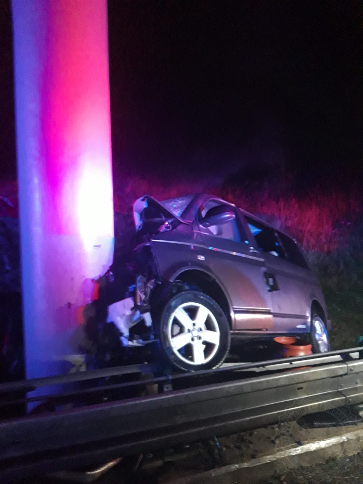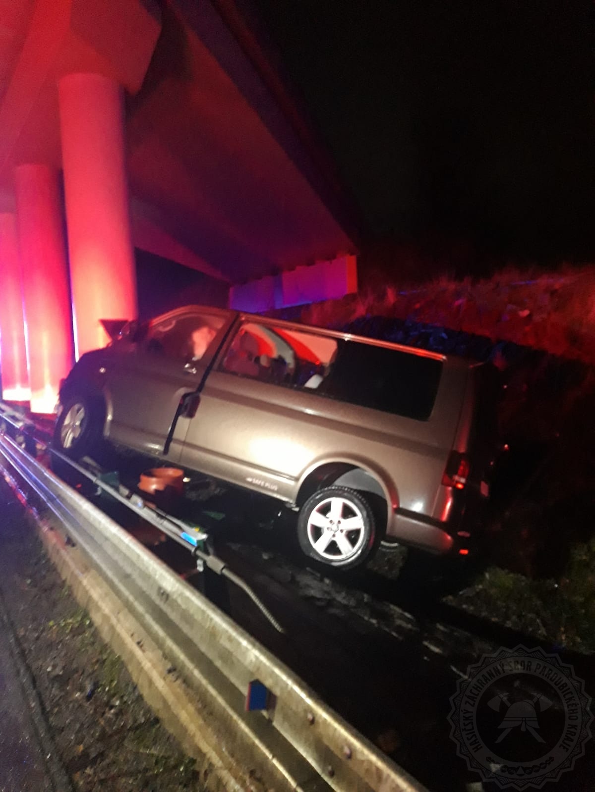 Řidič s automobilem narazil do mostu. K vyproštění zaklíněného muže museli hasiči použít hydraulické vyprošťovací zařízení. Ještě před naším příjezdem se o zraněného řidiče postarali čtyři kolemjedoucí řidiči.  Zraněný muž byl ihned předán do péče zdravotníků. Hasiči museli dále zachytávat unikající provozní náplně. Doprava na silnici I/35 byla řízena kyvadlově.